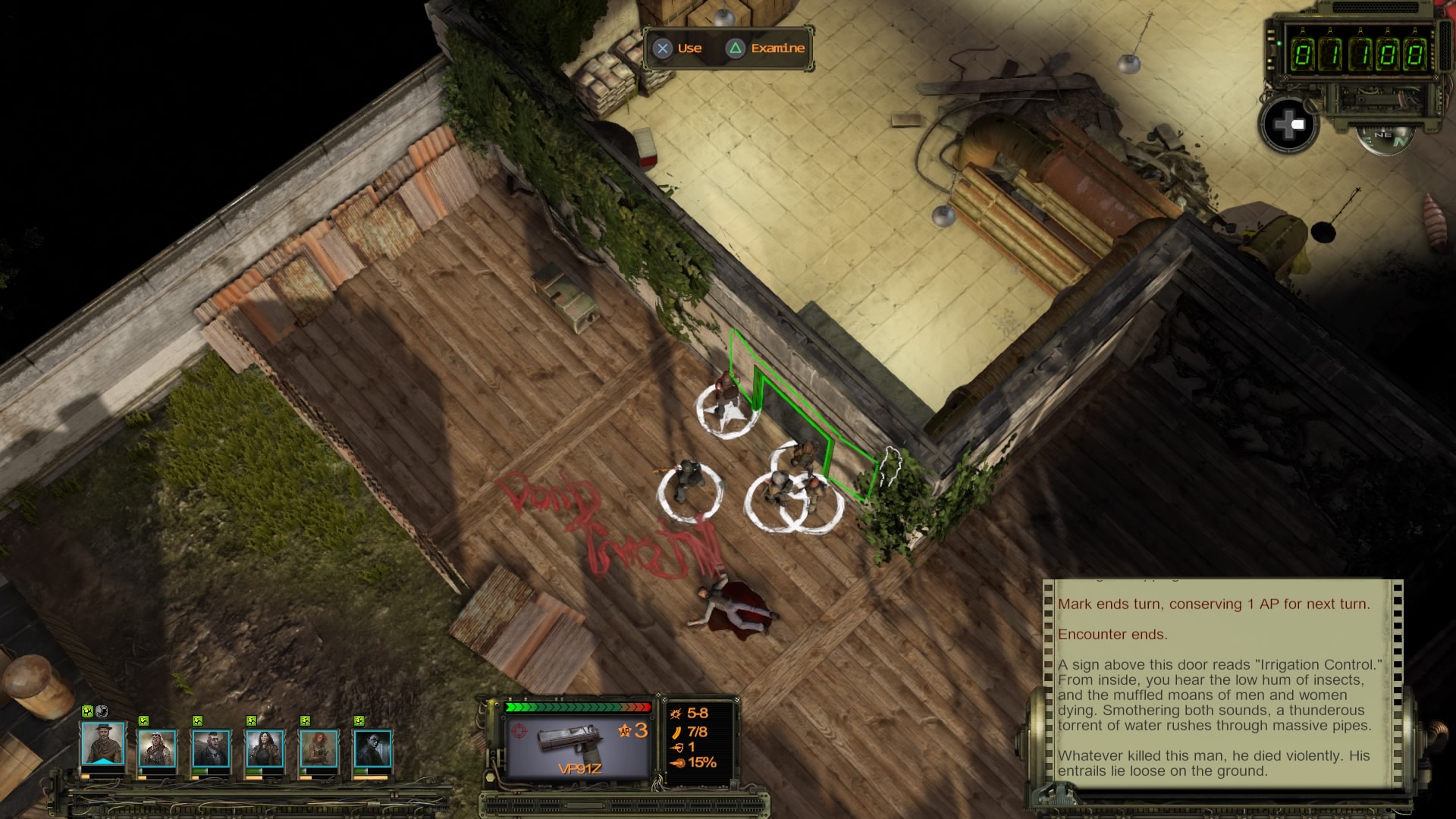 Despite the deeply strategic combat, however, the most difficult thing to deal with is the UI. Wasteland 2 was very obviously made for a keyboard and mouse, and it apparently had a hard time transitioning to console controllers. Things that should be simple, like opening doors, is made slightly challenging by the fact that the party has to be aiming directly at an object for it to be highlighted. Even aiming at enemies during combat can be hard, as the joystick seems to have a hard time moving across the combat grid. The camera controls seem off, too, and it is especially tricky to move the camera around the map, since it requires an entirely different mode to be toggled. Besides the controls, the on-screen text also wasn’t optimized correctly, and on TVs that are far away or are smaller, like the one in my bedroom, it is nearly impossible to read any of the countless lines of dialogue text or description text on the screen.