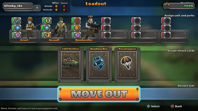 It’s a real shame that the experience is overshadowed by the constant desire to splash unnecessary cash, as the core game is actually really great. Everything has an element of progression to it, you’re always in a position to move forward and boost the abilities of your base and units. A clever perk and ability card system adds variety to attacks, offering weapons and abilities like napalm bombs, tear gas and decoys that can really turn the tide of a battle while perks boost the stats of your units. These cards are often post-attack rewards but can also be gained from card packs that, you guessed it, can be bought from the PSN store. Much like the gold, Guns Up! drops enough of these to get you by but dropping some cash would undoubtedly give you the edge.