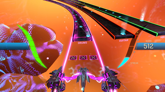 There’s no denying that Amplitude is a finished game. The controls are tight and everything looks and feels elegant, from the bright, neon tracks and nanoblasters, to the dynamic backgrounds that respond both to the music and how you are playing, and even the simple and quick menus that allow you to get right into playing. There’s even a FreQuency inspired tunnel mode — aptly named FreQ mode — that curves the tracks into a tube, for those that need a little of Amplitude’s predecessor.