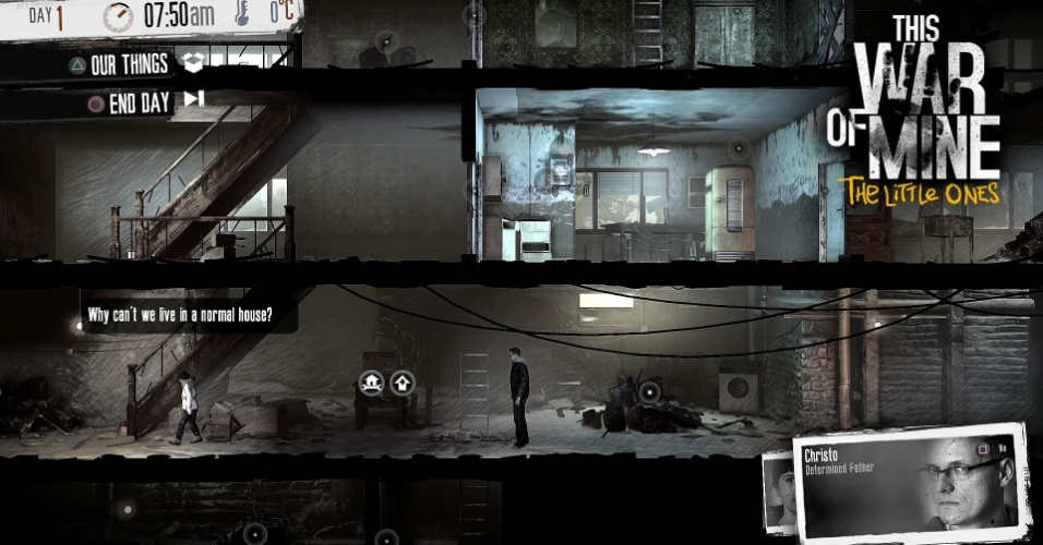War in games and war in films has always remained poles apart, and for good reason. The silver screen has often resorted to utilizing the horrors of war when weaving a story while games normally attempt a less poignant approach. Using the magic of interactivity the action and heat of battle is more often translated to the players than the travesty unfolding before them. It makes sense; murdering people technically shouldn’t be as fun as it is. This War of Mine: The Little Ones, then, brings an oddly profound look at war. It’s not all macho men and action, but that doesn’t mean it’s worth overlooking.