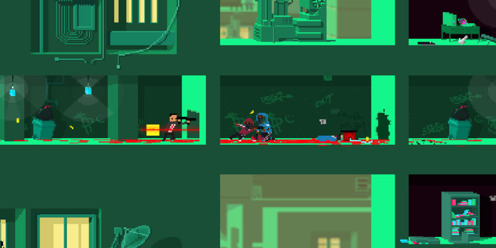 That’s where you come in. It’s your task to pick off individuals that are seen to impede Bunnylord and his mission for office. Fulfilling your contract can be achieved in a brilliantly non-linear fashion, with your objectives coming into sight via a number of optional routes. You’re also able to dictate your approach, either opting for a gloriously gory path, blasting away your pixel-based foes or by taking a more stealthy approach.