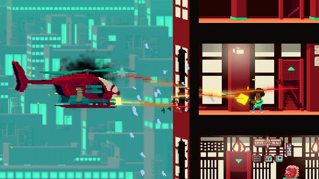 The latter proves the most attractive, not least because it shows off the “ISO-Slant” technology the best. This is the bit of tech Roll 7 has utilized to reach the void found between two and three dimensions. This gives Not a Hero an exceptionally unique perspective that couples brilliantly with its pixel art style. It also plays hand in hand with the cover mechanic, making the stealthier approach far more functional. It’s no Uncharted when it comes to cover, but it certainly changes things up and makes you think twice about your next move.