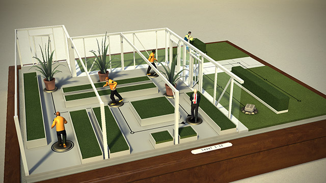 And yes, the puzzles are quite good. The basic gameplay boils down to mazes on a game board, where you must avoid stepping into the path of an incoming guard and reach the exit or the mark. As a bonus, you can complete some secondary goals for a bit of replay value; these tasks include getting to the exit in a certain number of moves, killing all or none of the guards, or grabbing an optional briefcase on your way out. I’m always happy to see game developments work with that most crucial of elements: the evolving set of mechanics. To put it a more specific way, this game starts you off slowly, teaching you the most basic of moves, then gradually introduces new concepts and mechanics as you move forward through the levels. Better yet, there are no real tutorials required — whether it’s throwing objects to distract enemies or hiding behind plants, you can learn everything in Hitman GO intuitively by just playing the game. That’s a real accomplishment, and it’s nice to see simplicity done so right.