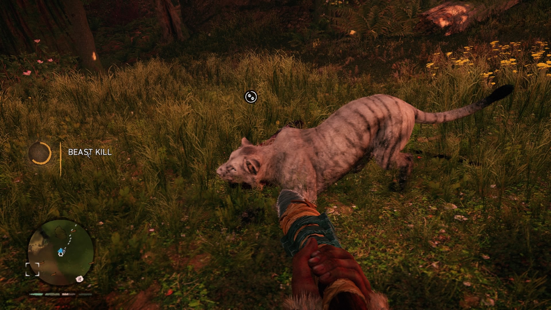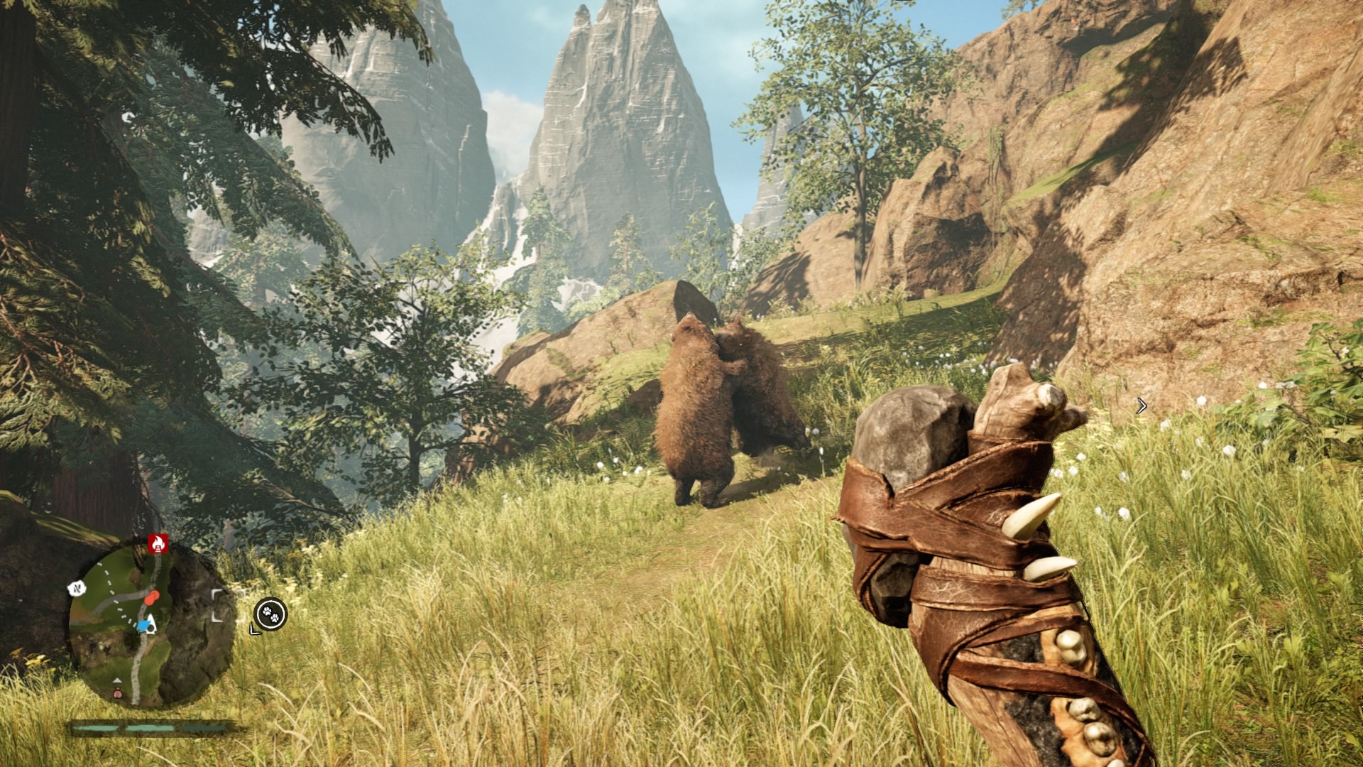 The biggest alteration aside from the setting and removal of guns is the ability to control animals, at least the predators. Taming beasts is a fun mechanic early on, but once you’ve tamed each different creature, there’s no reason to tame anymore as you can call each one in from the beasts menu. Even if they die, you don’t have to tame a new one. You can just revive the beast using easily found red leaves. After that, it’s all about controlling the beasts. In some ways it feels a bit cheap to send in a saber tooth tiger to take down an entire outpost but Primal balances this out by making even the top tier predators fall with relative ease if not managed properly against late game enemies.