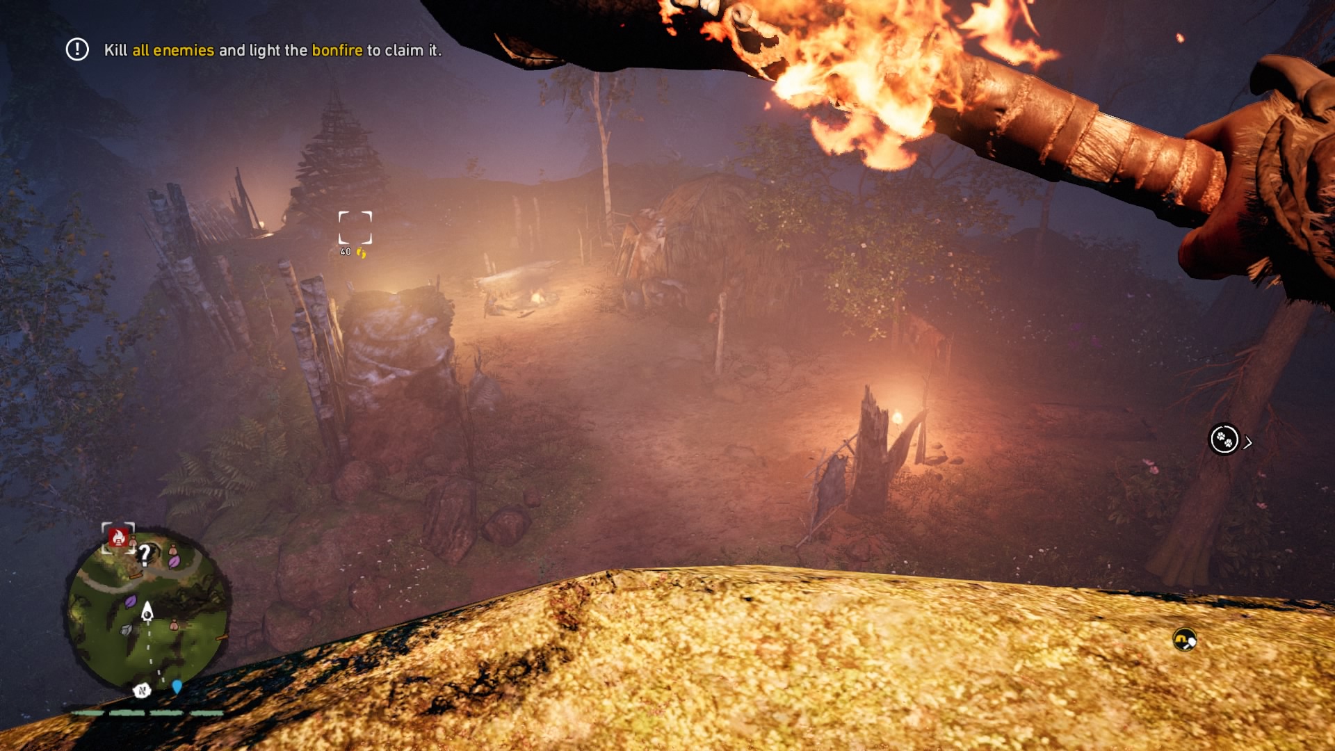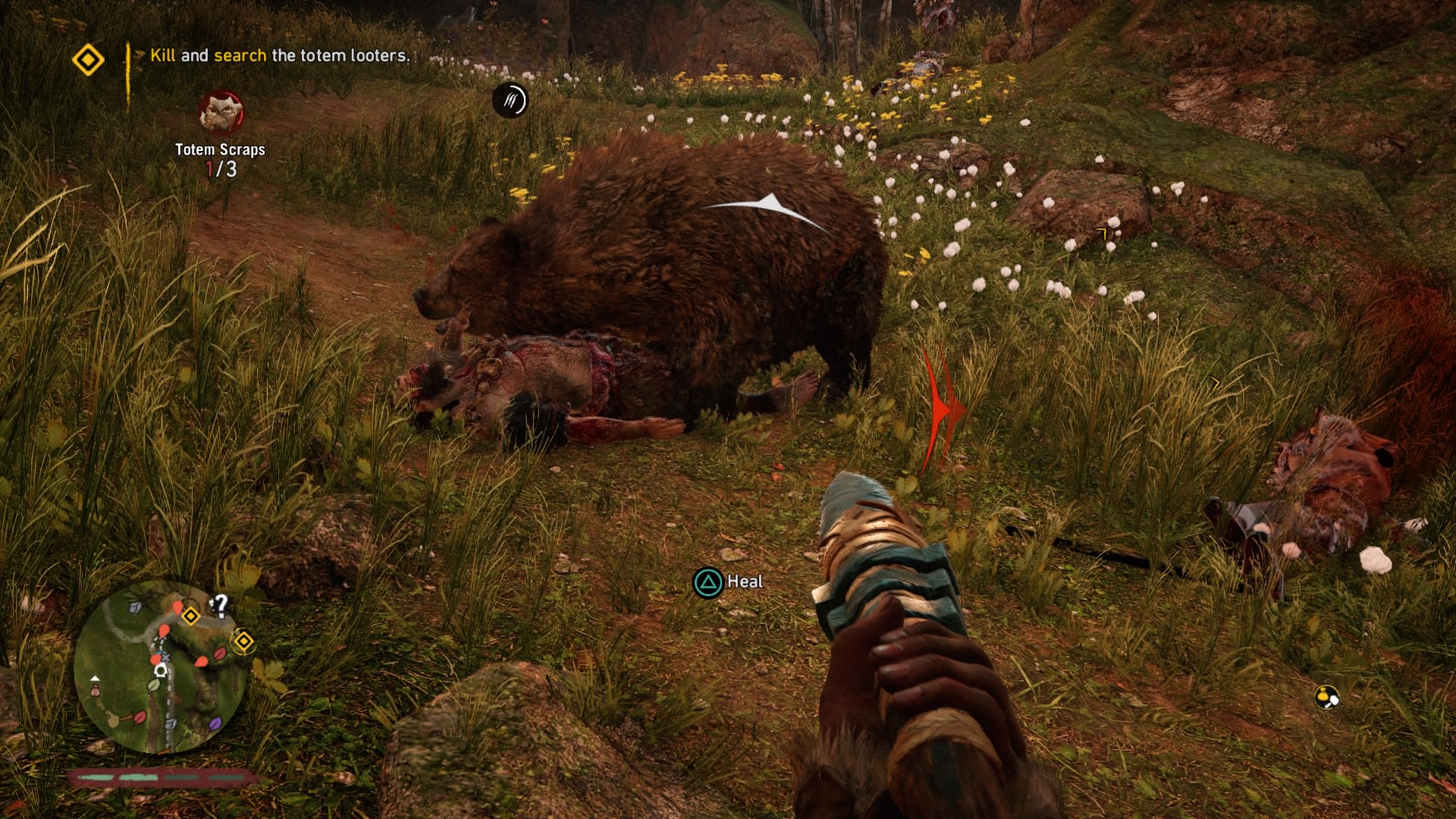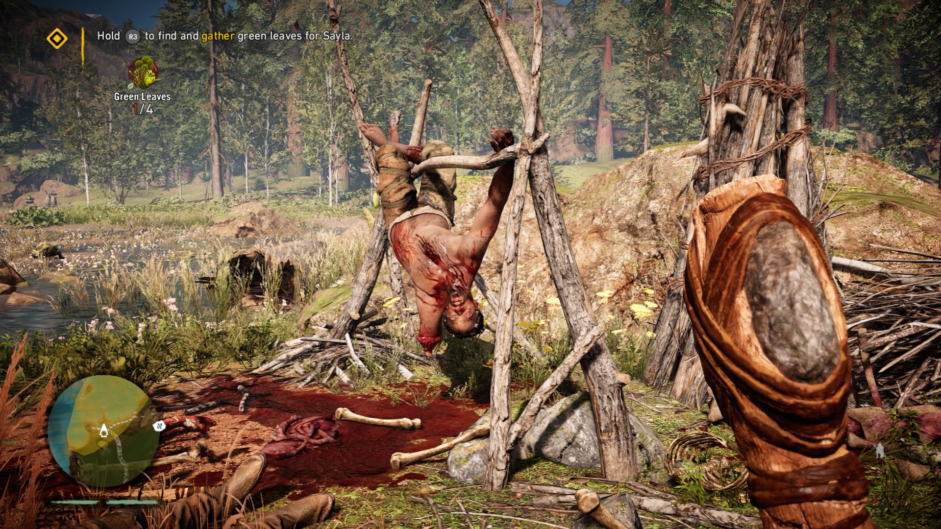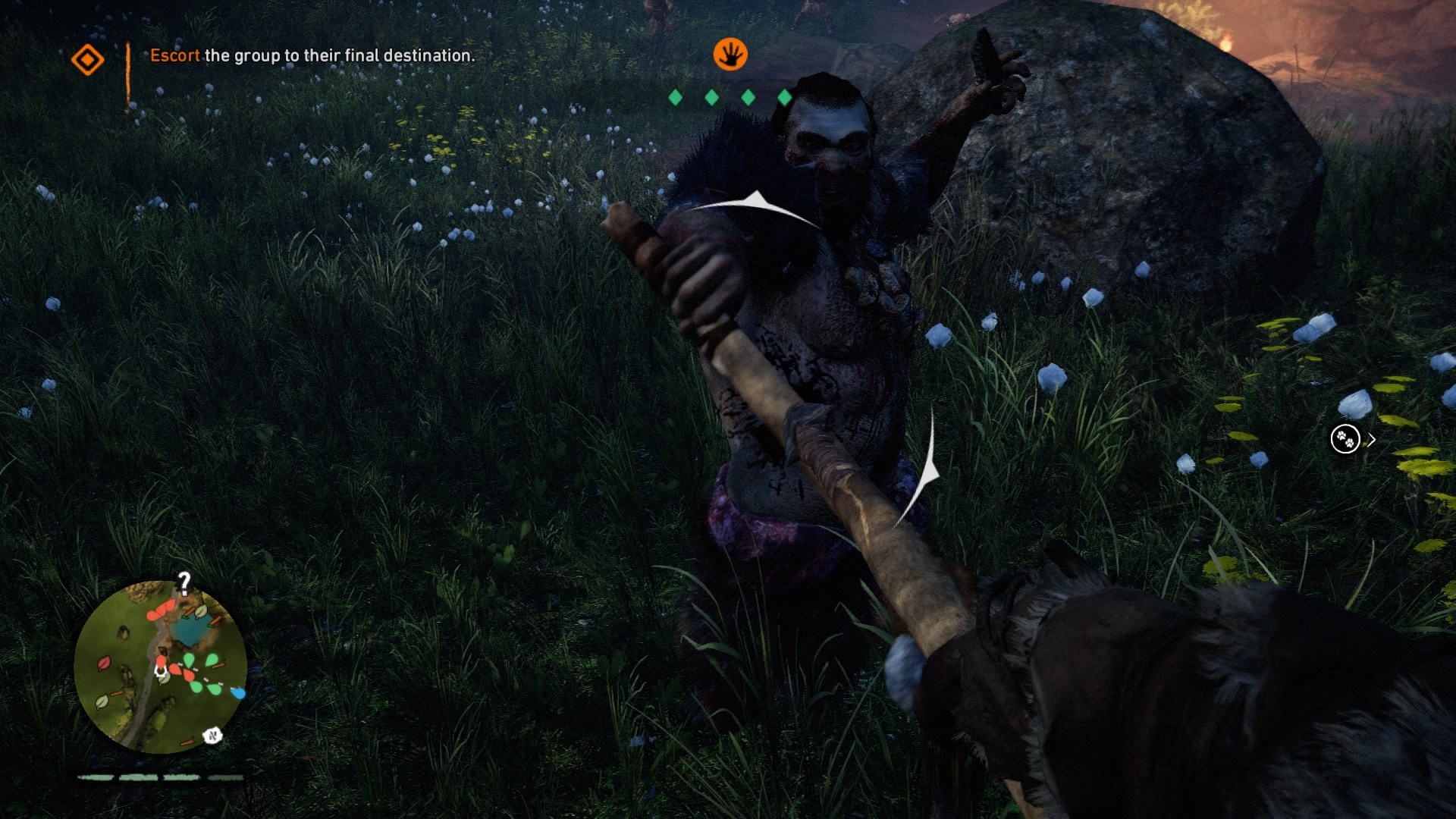 If you played Far Cry 4, it quickly becomes apparent that someone hurled that Blu-ray disc 12,000 years into the past to gather some prehistoric cave paint. Bows have always been a staple of the Far Cry games (arguable the most fun weapon to use). The woolly mammoths are essentially just Far Cry 4’s elephants. The animations of skinning animals and looting bodies haven’t changed, but they can be thankfully turned off in Primal. Even mission types are basically reskinned versions of the 2014 model. Underneath the shifting glaciers and mud huts, much of Far Cry as we know it has been copied over. Primal maintains a good disguise, but riding a mammoth through an Izila fort would have more impact if we didn’t do the exact same thing in Kyrat a little more than a year ago.