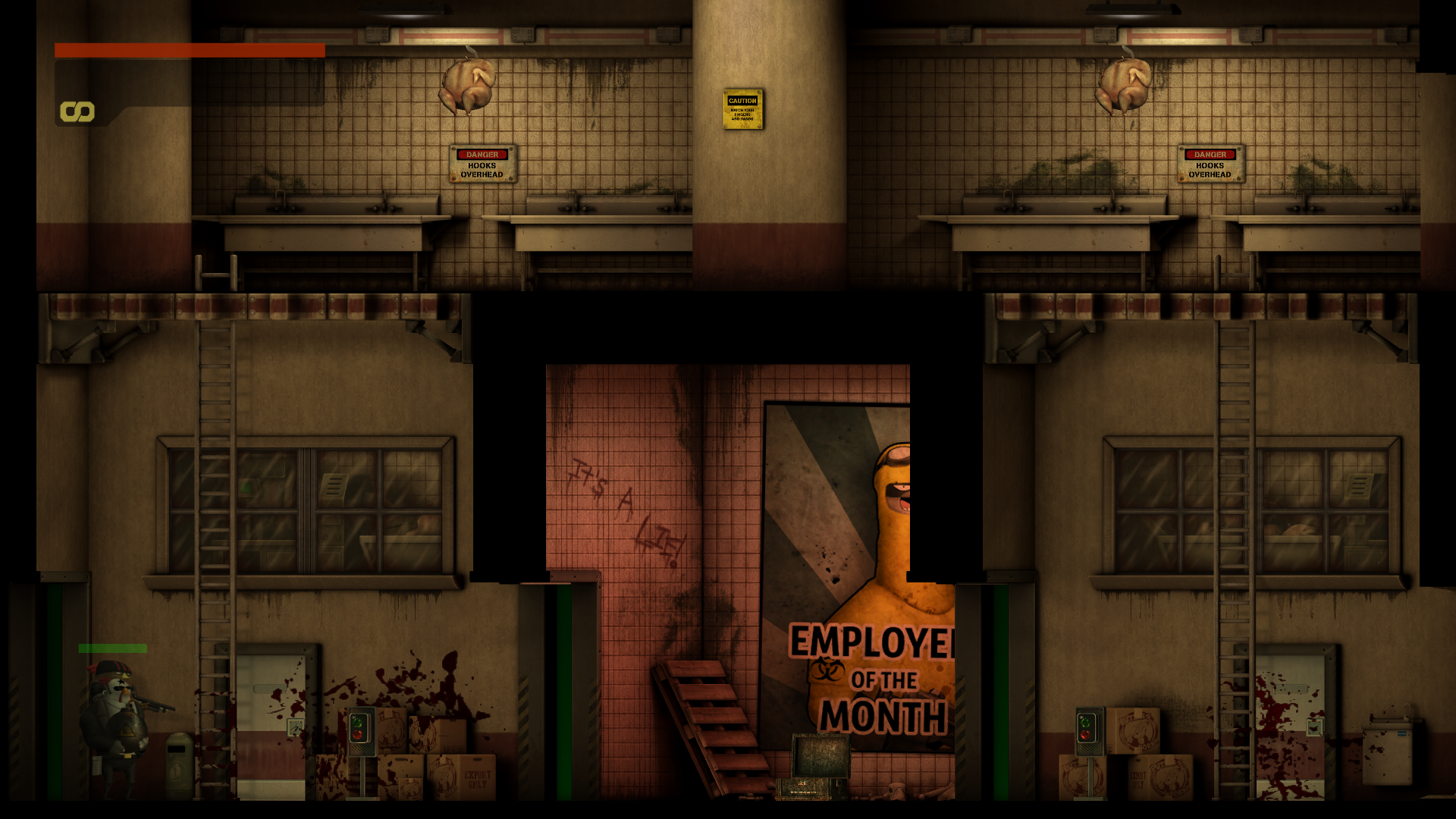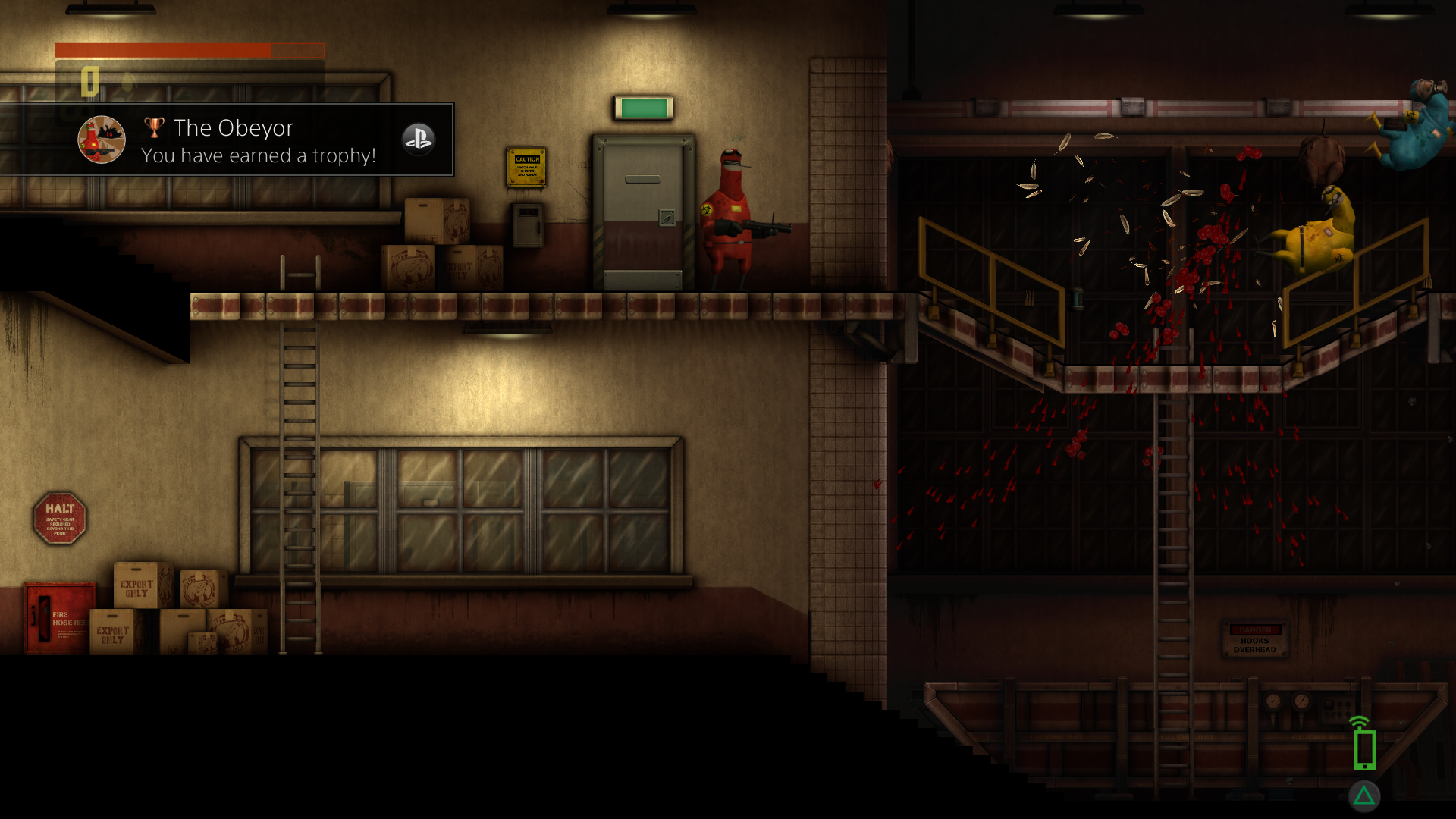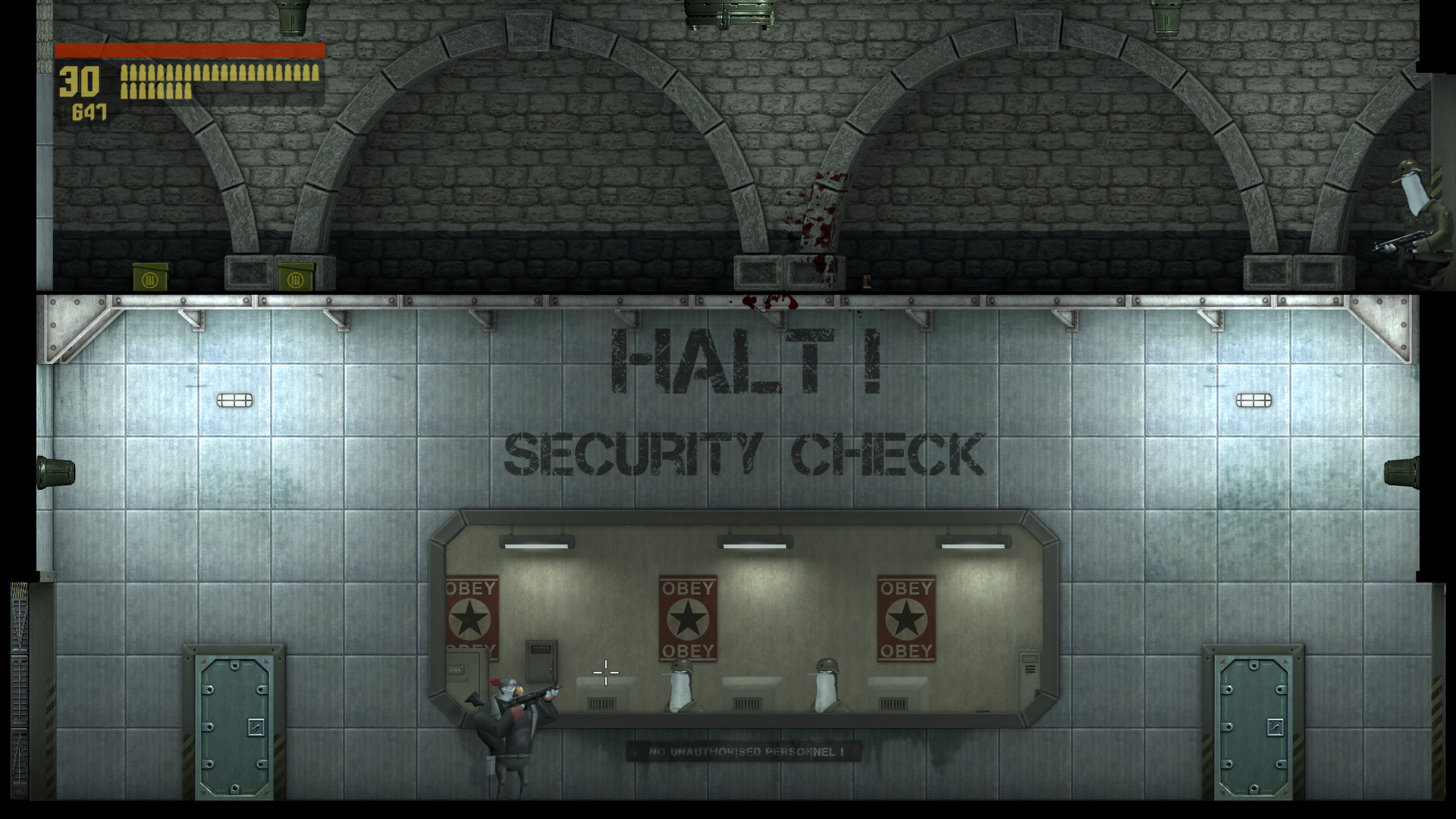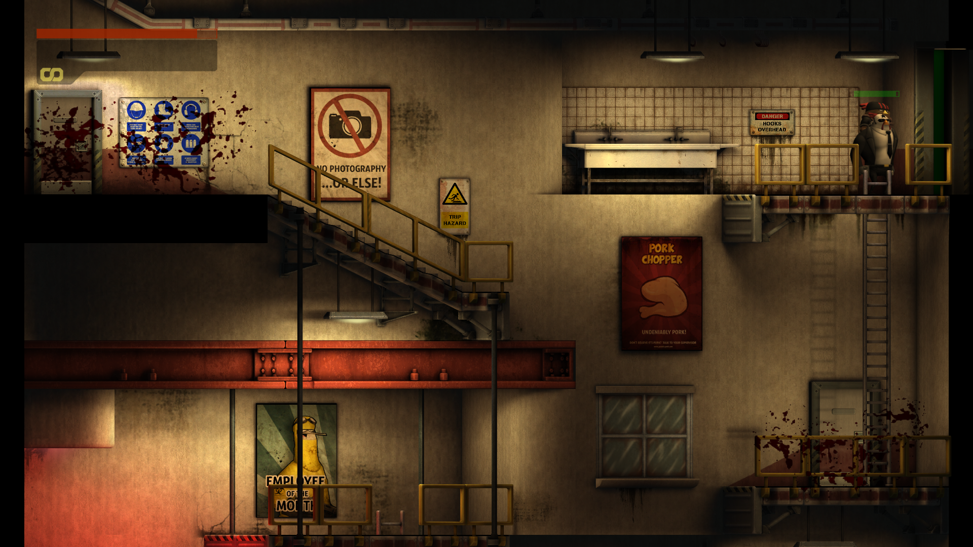 Rocketbirds 2 maintains the same aesthetic of the first game, which includes a realistic-looking environment with unrealistic characters strewn throughout. While the game plays in 2D, the background are all fully rendered in 3D. There is even an intriguing camera effect, whereby the camera pans left/right, opposite to the direction in which you are moving, and you can see around corners of hallways in the background. It’s a type of parallax which is pleasing to see. The game also maintains a steady, high framerate throughout, though this isn’t a particularly taxing game to begin with.