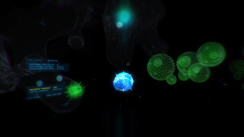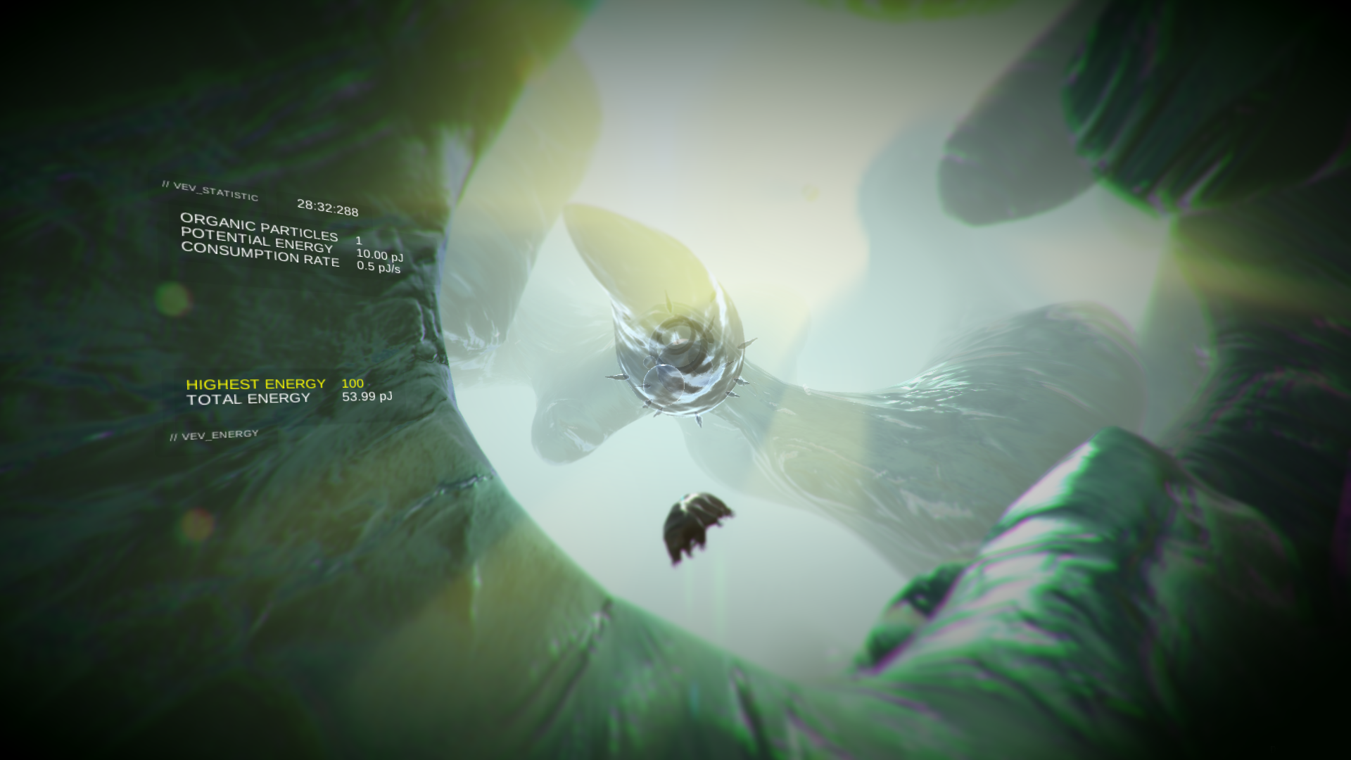 It’s a game, though, so of course players have a goal that they’ll have to accomplish. Completing a level is done by lasting the maximum operational lifespan of a VEV which is 30 minutes. To last this long, players will need to power their organism by collecting nutrient clusters that float around (otherwise you’ll run out of energy), and avoid dangerous enemies that can destroy them instantly.