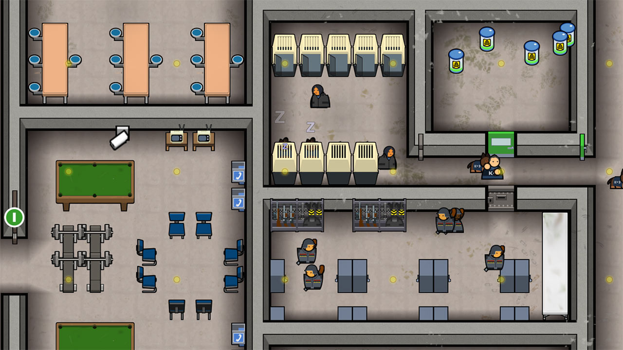 Inmate Peters seemed to be the only one taking the carpentry class. He dutifully sat there alone in an empty workshop while the foreman taught him. It was awkward. Then, skinny Peters would go back to his cell each night and stay up trying to talk the surrounding guys into joining him. Speedy was up all night too, but that’s because he was tweaking out. Looks like he wouldn’t be joining the class the next day. Wilson just told Peters to shut up and went to sleep. Okay, so maybe my prison had a contraband problem and no one was motivated to educate themselves. Whatever. It was fine. Speedy took the Pharmacological Drug Rehabilitation class eventually, and I hired some K9 guard units.