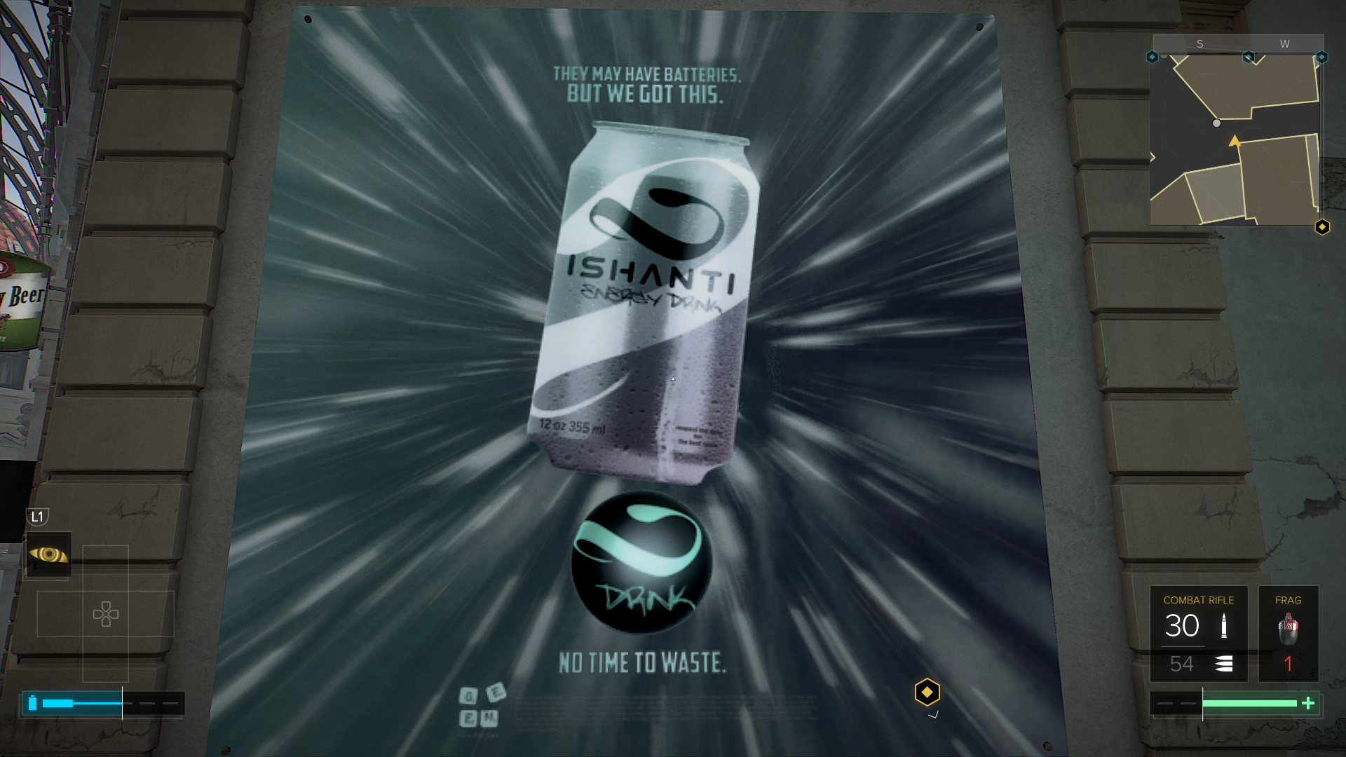 There’s a new control scheme built specifically for Mankind Divided. It mostly works, but has a few decisions that take some getting used to, such as using the Triangle button to sprint, and L3 to take cover. This can make combat in the beginning hours of the game a little awkward, and while there are alternate control schemes, ultimately it behooves you to learn how to play as the developer intended, because play testing has no doubt revealed that this control scheme works best given all the complex mechanics at work in the game.