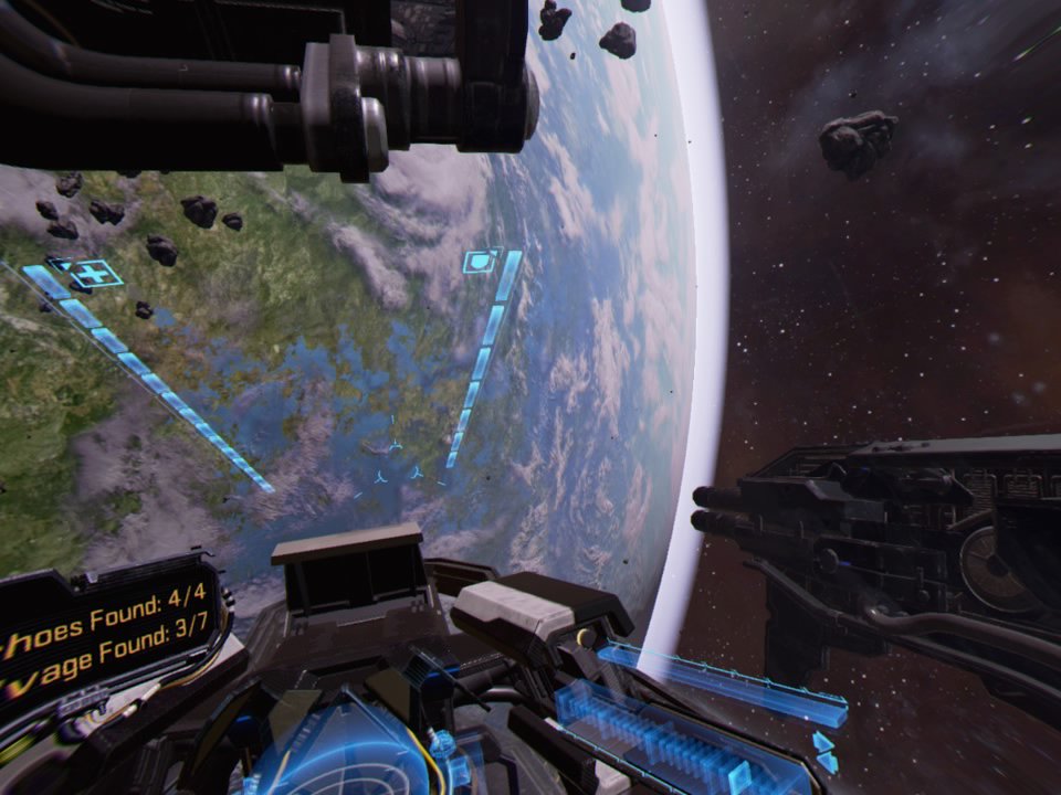 This head tracking is also used to aim the fighter jet’s alternate weapon, lock-on missiles. There is something highly satisfying about making a sharp turn in the air, managing to shoot one enemy, and then using your head to launch missiles at another foe. Things that would have been incredibly difficult to pull off in a regular game are now easy to do thanks to virtual reality. It’s a perfect example at how an established genre can be enhanced by the medium changing, and I don’t look forward to playing a space combat game outside of VR. I’ve had a taste of what the genre can evolve into, and I don’t want to go back.