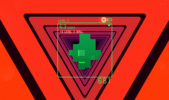 SuperHyperCube is extremely simple. An ever growing cube — or mass of cubes, rather — moves forward at a constant pace, sitting directly between your line of vision and a hole in a wall on the far side of it. Your task is to rotate the cube amalgamation until it can fit through the hole, each success adding more cubes for an increasingly complex shape. In addition to the complexity of the cube, you must lean around the mass in order to try to see what shape the hole on the far wall requires. Fail to match up to the hole and the wall breaks some blocks off, lowering your potential score. Miss a second time and your run ends, sending you back to square one, or cube one, rather.