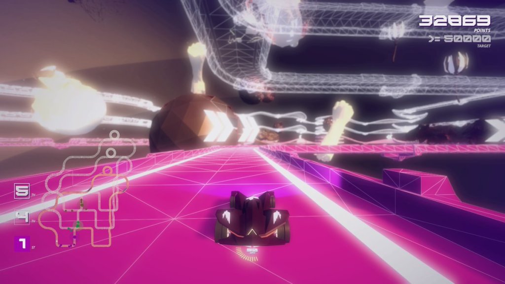 This leads to a strange, sort of disjointed experience compared to other racing games. I would often get all of my cars to first place off the bat by using up the default boost and then switch whenever I would see one of my cars start to lose positions. From there, I would start wrecking into vehicles to gain boost, then use that extra speed to get back into first place and continue on.