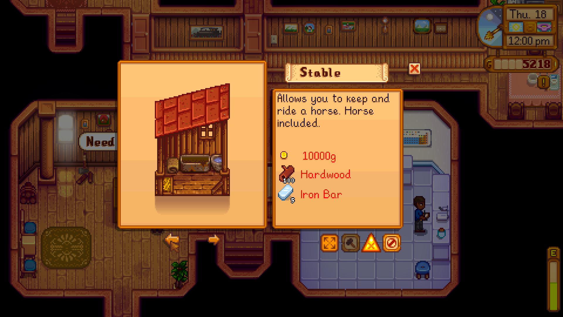 As you play Stardew Valley, you’ll accumulate experience depending on the things you do. Thankfully, you are given all the tools you’ll need to pursue various professions, which never break. This includes a pickaxe, axe, hoe, scythe, watering can, and fishing pole. Catch enough fish, and you’ll level up. Level up enough, and you’ll learn crafting recipes for new fishing-related items; the same applies to every tool. If you interact with the television installed at your house, you can even learn cooking recipes, to be used when preparing food in the kitchen of your house, should you choose to pay for that upgrade.