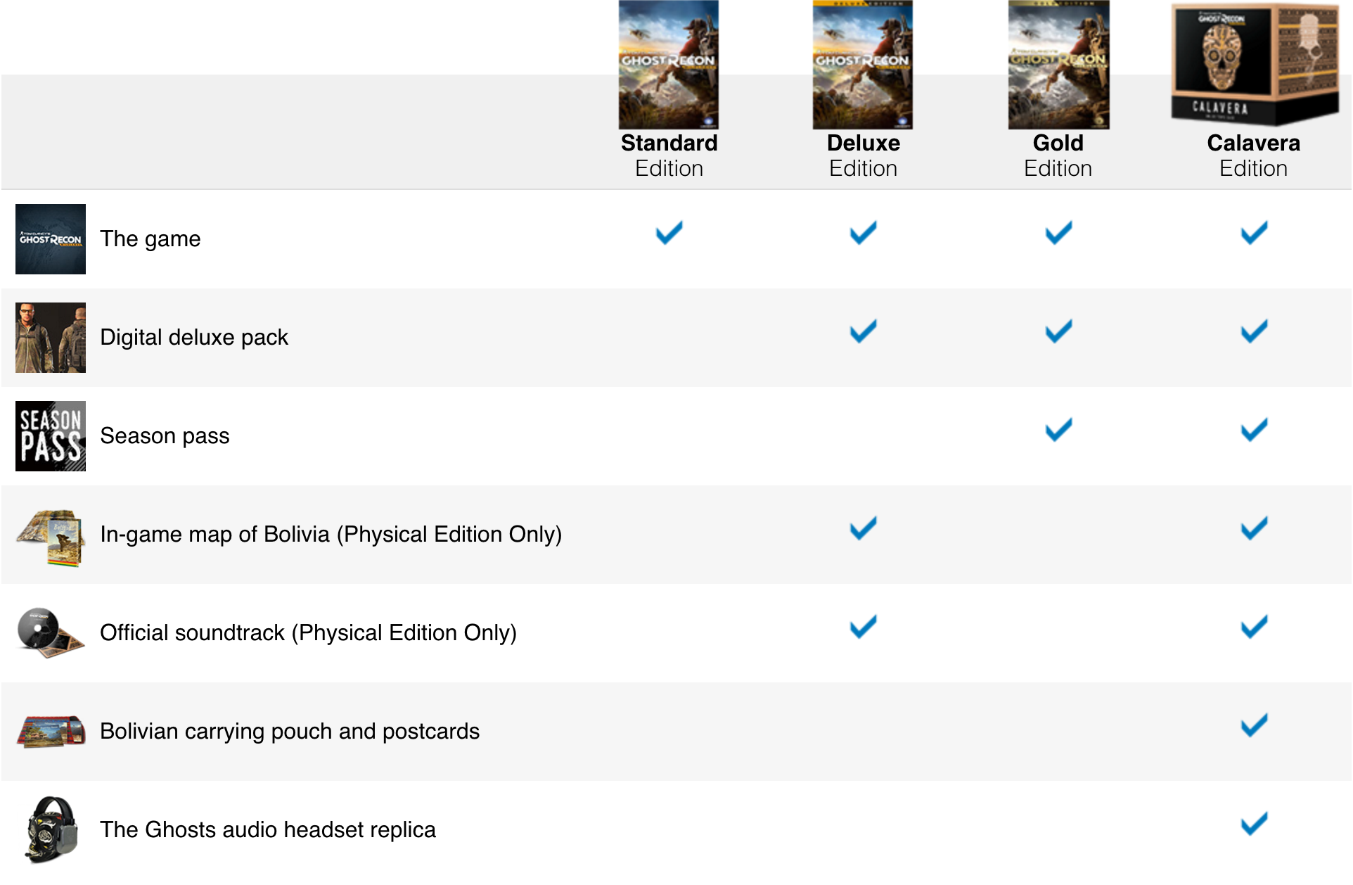 In classic Ubisoft fashion, there are an array of SKUs available for Ghost Recon Wildlands.