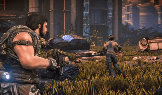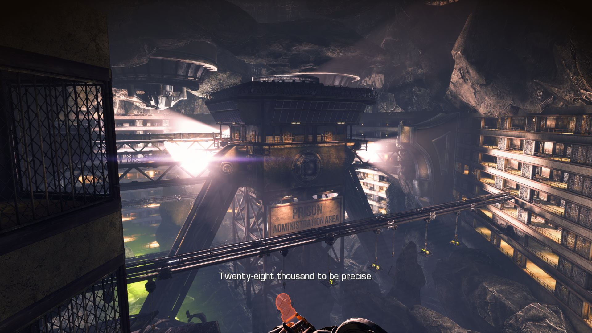 In Bulletstorm, you play as Grayson Hunt, leader of the Dead Echo squad of black ops mercenaries. Long story short, you are tricked into murdering innocent civilians, and go rogue. The crux of the campaign is one long revenge story, with a bro-centric cast. Everyone has a large vocabulary that includes various forms of the word “dick” tacked onto it – including the leading lady who, other than possessing slightly exaggerated breast physics, is mostly just “one of the guys” with a sailor mouth as dirty as the rest of the cast.