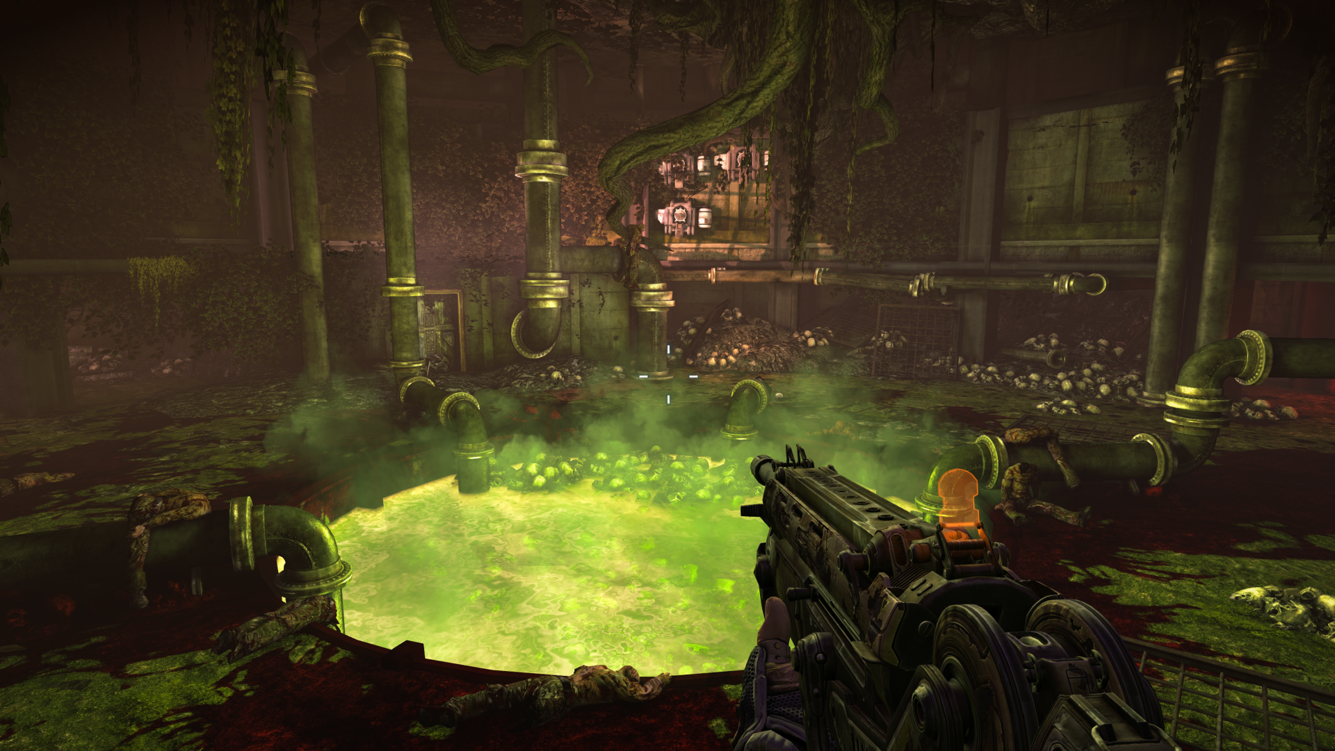 In case you’re not familiar, Bulletstorm is a first-person shooter with an emphasis on stylish kills, known as Skillshots. Using an energy leash you find early on in the game, enemies are quickly at your mercy as you can use the leash to yank them towards you, slowing them (and other projectiles) down mid-air to unleash a clip into them. Coupled with a kick that inexplicably does the same mid-air slowdown, Bulletstorm is a high-gore kill-fest, where every different type of kill is worth a certain amount of points.