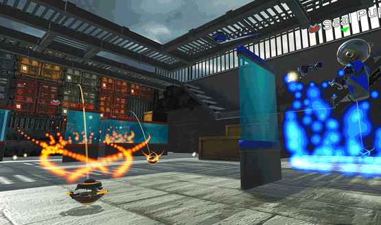 Pitting players against each other in a variety of 3v3 arenas, players pick up balls scattered around the playing field and shoot them at their opponents. One hit is an elimination, and the first to eliminate the other three wins the round, with five round wins completing the match. Gameplay is handled using two guns, so you will need two Move controllers (sorry DualShock 4 only players!). These guns are used to suck up the nearby energy projectiles and shoot them at others, along with allowing you to hold the balls as pseudo deflector shields against other players’ shots.
