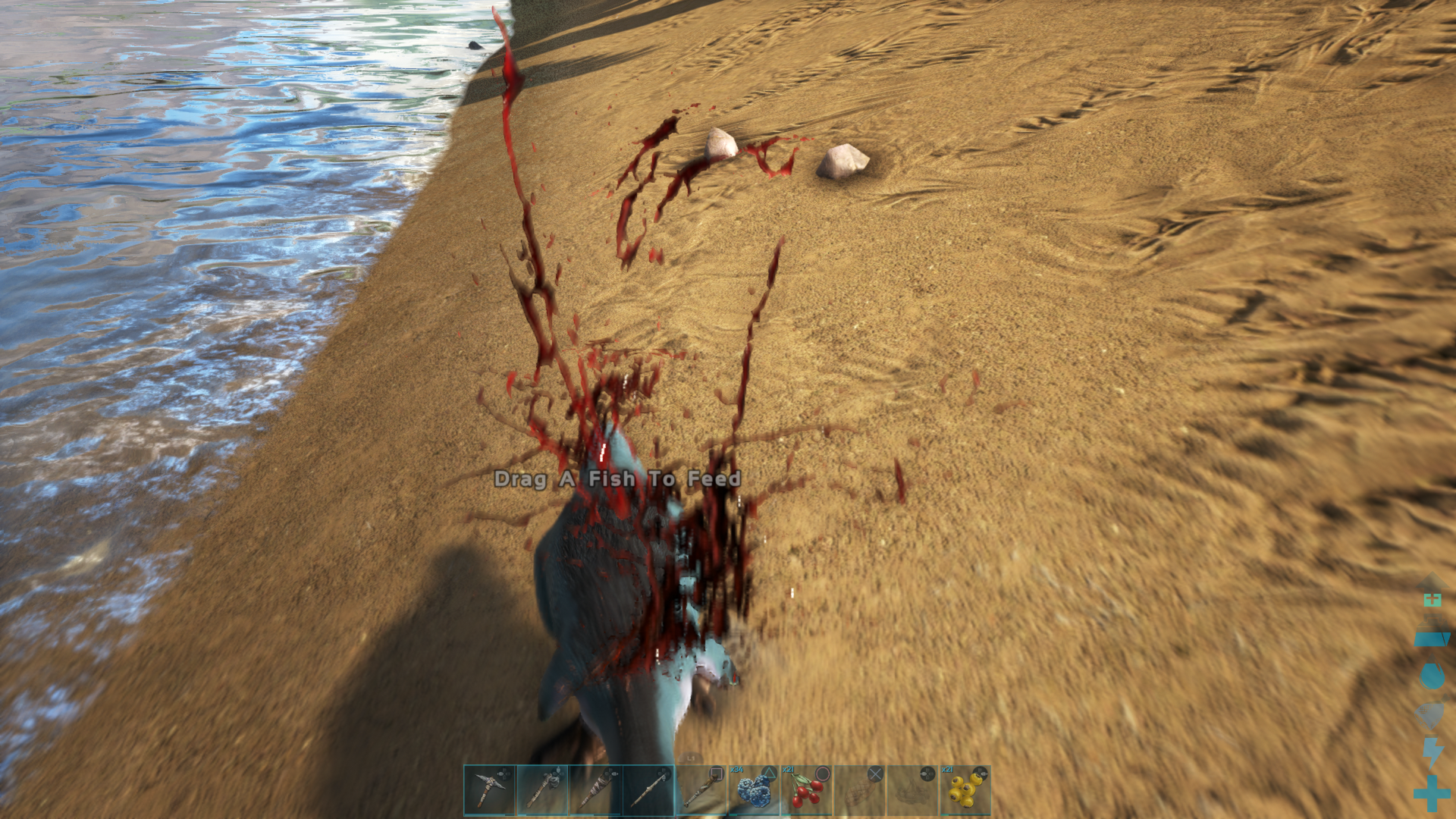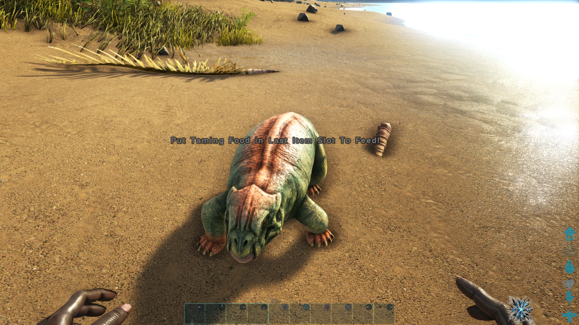 Ark: Survival Evolved really pushes you to play with others. Once you reach level 15 or so, the items that can be crafted start having higher resource requirements. At the same time, as you venture further inland, the dinosaurs and other creatures become tougher, requiring coordination between multiple people to have a hope of taking down successfully. There are a decent amount of official servers available, supporting up to 72 players on a single island. This includes Player-vs-Player (PvP) as well as Player-vs-Environment (PvE). PvP servers are only recommended if you have a group of friends whom you know are reliable and in it to play for the long run, because your character continues to live on even if you quit the game. They simply go to sleep in the exact spot in which you left the game, slumped over, and essentially lifeless. After a certain amount of inactivity (three days or so), players and their structures are killed and demolished automatically. Just simply coming back to the game within that time limit is no guarantee that your character and stuff is still safe, either, as you and your things are still open to receive damage while you’re not online.