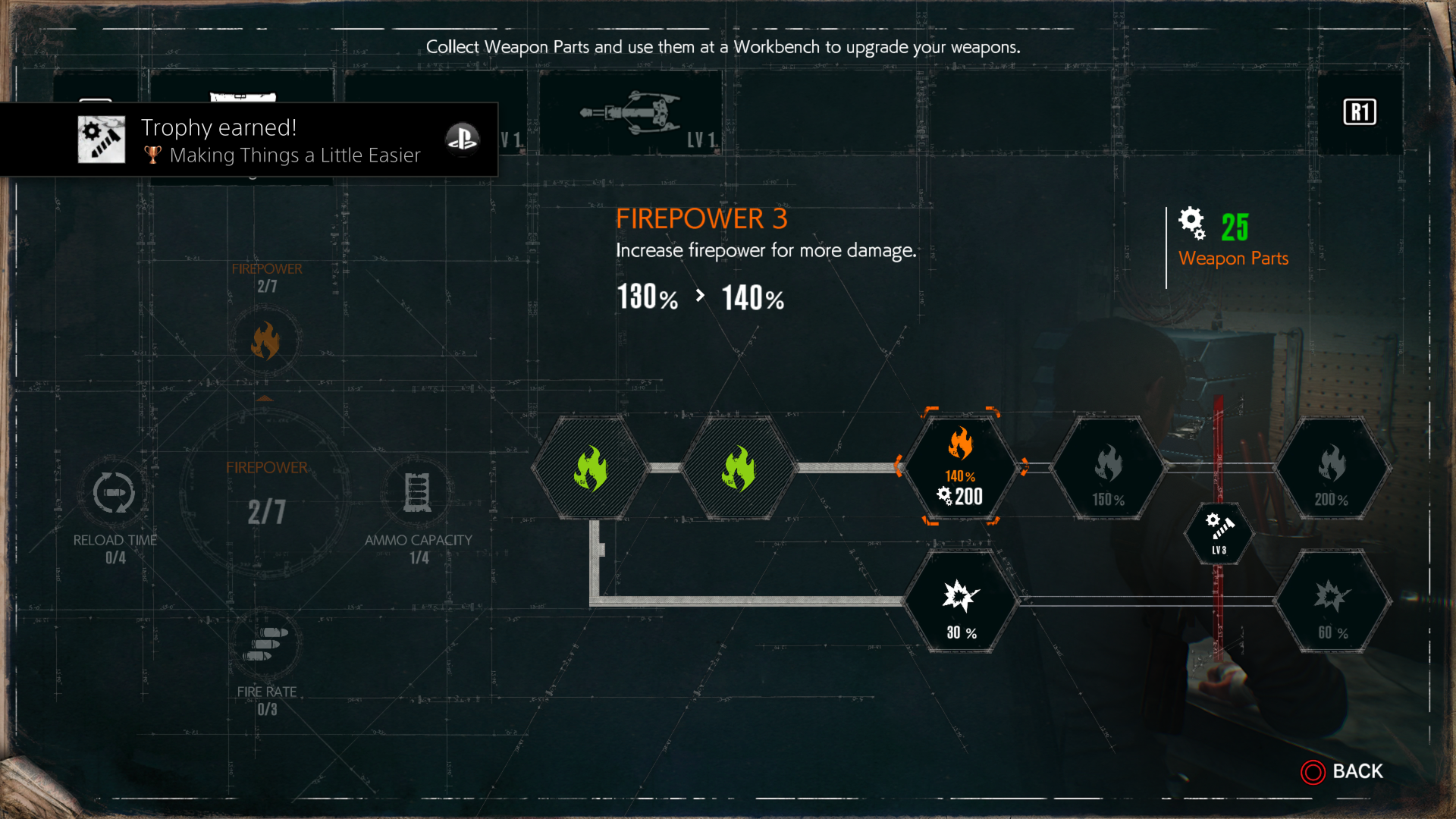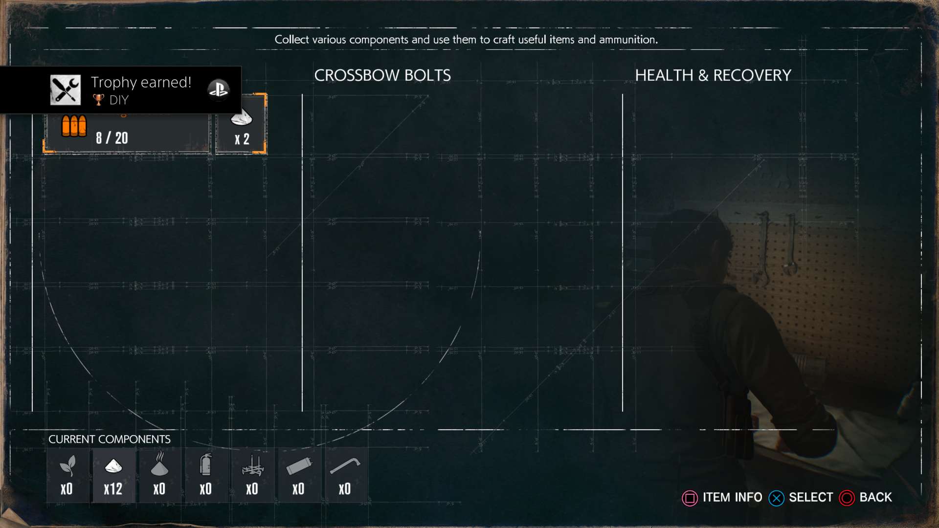 Crafting only played a small part in the original The Evil Within, as you could create specialized bolts for Sebastian’s Agony Crossbow, but it is a central mechanic in this sequel. Throughout the adventure, various resources such as gunpowder, fuses, and herbs can be found or picked up from fallen enemies. These can be utilizied to craft more ammunition for the various weapons at Sebastian’s disposal, or the occasional healing item.