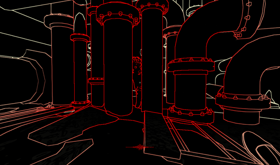 I started off by calling out softly at each juncture. The path from the forest to the sewers didn’t have anything frightening along its length, but it’s that unknown that’s truly frightening. Deeper in the sewers I was met with red lines instead of white. Clearly whatever was making those sounds was not friendly, but for now, it appeared to be on the other side of a set of pipes. Catching a glimpse of a monster in a traditional horror game can be terrifying. Catching a glimpse of a monster using audio pulses from your own mouth that is clearly drawing it to your location is another experience entirely. I tried to quietly creep through the ankle deep water without making a sound, but the sloshing was drawing the creature parallel to me. In VR, it was truly unsettling. It wasn’t just following my character. It was following me.