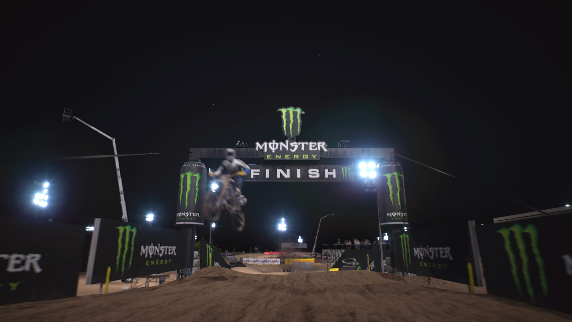Your brain will tell you that this is a sim, so you need to learn the limits of your bike and take things slow. Then you leap over a jump, accidentally land squarely on another rider’s head, and watch as you bounce as Mario does off a Goomba, while your unfortunate opponent accelerates on as if nothing has happened. Slip off your bike when you’re leading in the race to the holeshot, and you’ll see one or two others fall off as they crash into your downed machine, while the other 19 riders all ride over the pile of debris without the slightest hitch in their giddy-up.