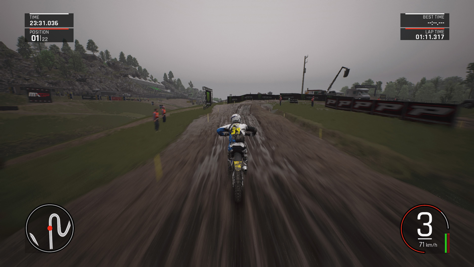 It may seem strange to go on about the rivalry system so, but it’s highly indicative of the grander picture. MXGP Pro is half-baked and no one feature is particularly well-rounded. To top things off, the developer then throws a stack of pretty basic problems into this undercooked mix before shouting “buon appetito” directly into your ear. Even in spite of that, there are times when things feel promising. When you’re learning a line around a track and managing to stay up on your wheels, cutting out beautiful new ruts in the mud behind you and skidding artfully around the inside of a sharp corner to steal a position, you start to think that maybe you’ve been too harsh. Maybe the problems were mostly your fault because you didn’t take things as seriously as you could have done. Maybe, just maybe, you’ll give it a bit more time.