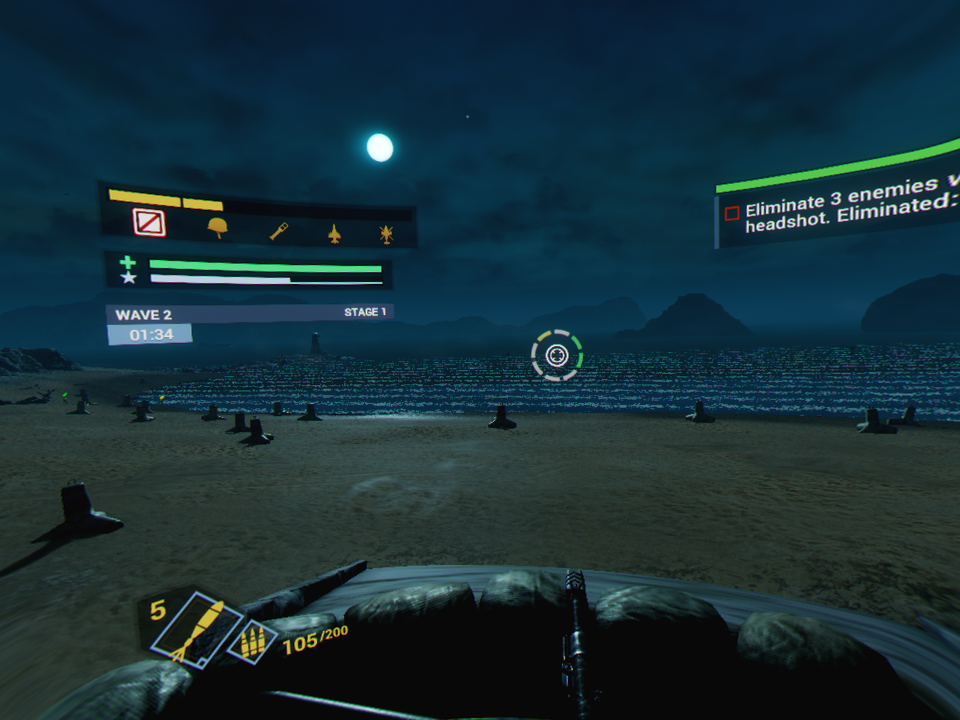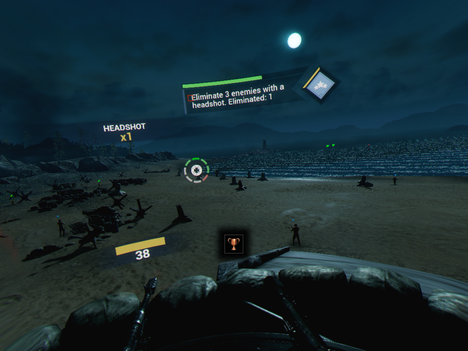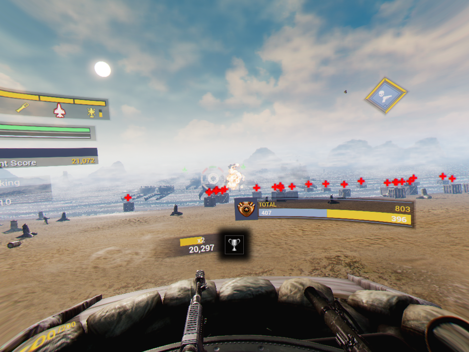 Anyone remember the Beach Head arcade game? Specifically, Beach Head 2002? This arcade machine featured a yellow pull-down VR screen, which had triggers attached to it. The player was allowed standing room, to turn a full 360 degrees and attack enemies who could approach from any direction. This was impressive tech back when it released in 2001, and Mastiff attempted to capture some of that arcade appeal, here in PSVR form. Sadly, it must be reported that this isn’t the case with Heavy Fire.