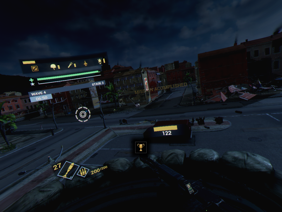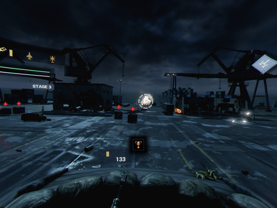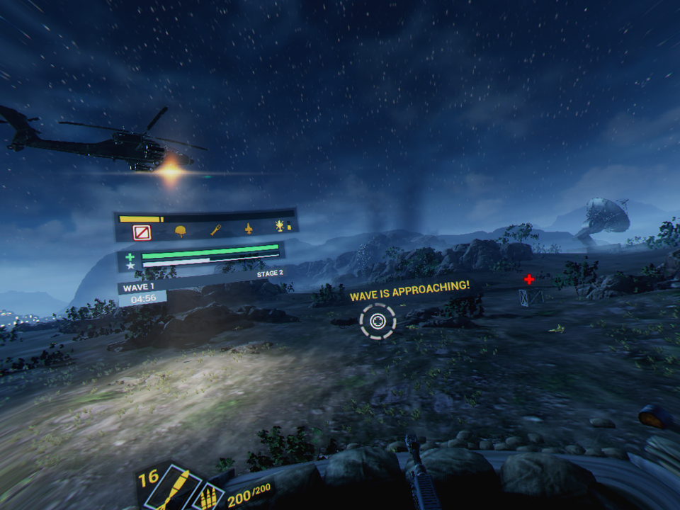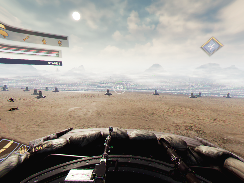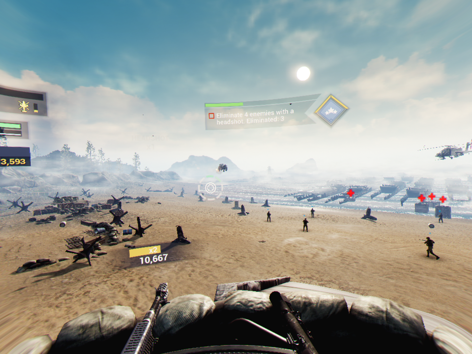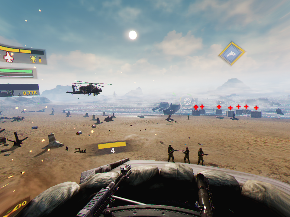 A separate mode to enable VR is available, for an additional $9.99, though this was included for free with digital pre-orders, and is included in the physical edition of the game at Walmart. This sounds like a no-brainer. A first-person shooter where the player is in a rotating machine gun for the duration of the battle should be an easy fit for virtual reality. Problem is, Heavy Fire’s VR implementation simply puts the player inside the game, while the controls do not change at all. Most first-person VR games where the player is locked in position (like a tank or flight combat game) allow the player’s gaze to control the reticle, both because it feels natural and enables higher accuracy than could ever be achieved with the right analog stick. Heavy Fire doesn’t do this, and the player is forced to use the left analog stick to move the view, and the right stick to shift the reticle slightly. Looking around only allows the player to spot enemies more quickly than panning with the left stick. It’s frustrating when having the reticle react to the player, as well as rotating the view, would’ve resulted in an instantly better experience.