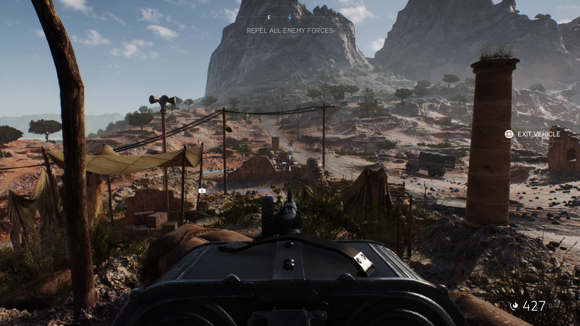 Thankfully, in two of the three campaigns, the second act is where the curtain is pulled back, revealing a massive playground in which to orchestrate mass mayhem. As soon as the map opens up, the game begins to feel much more like a proper Battlefield experience. After being led off by the next chuck of obligatory exposition, the player is saddled with the task of, in the most literal sense, single-handedly laying siege to three separate enemy strongholds. At this point numerous weapons, vehicles (both airborne and grounded), and combat tactics are finally available, allowing for strongholds to be tackled in whichever order the player prefers.