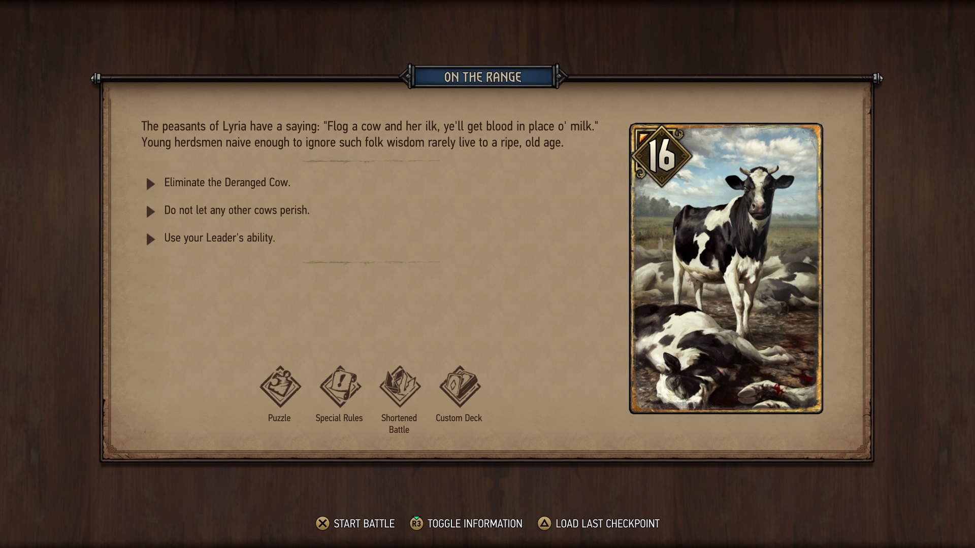 Instead of encountering random enemies running about the world maps to hack and slash to death, all battles, including puzzle markers, will activate a game of Gwent. There are two types: your standard best two of three Gwent game, and Special Rules/Decks for certain story events and puzzles. This is where it’s important to note that the difficulty levels for this game will impact Gwent more than anything else. For the purposes of my review, and the fact that I didn’t want to be stuck playing the same battle over and over for an hour, I went with Easy. Why Easy mode? Because that is the only mode in Thronebreaker that allows you skip Gwent battles after the first attempt, should you so choose. (Best. Decision. Ever.)