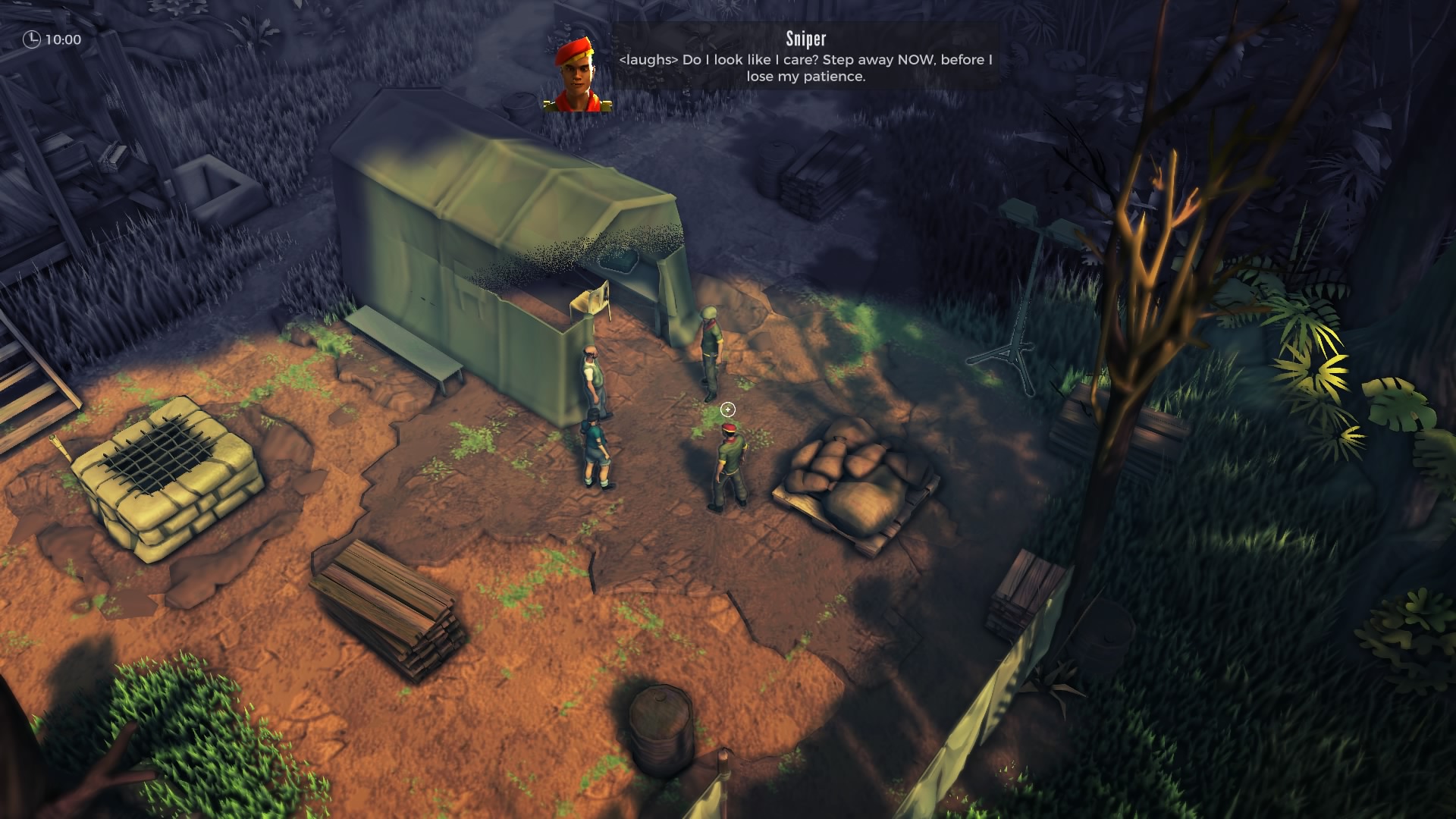 Other frustrations include the UI, which requires its own battle to navigate. The hotkeys to do some interactions with map items eases the pain of trying to hover over objects and not get the correct prompt to click them. That said, the map itself can be a bear to use correctly. It never seems to zoom in close enough to the action. This is a problem when you want to make damn sure you’re taking the right route to an attack position without crossing into a patrol’s vision cone. Especially since the textures and models in the environment aren’t great. From the closest zoom of the field, tall grass looks a lot like short grass, except one grants obfuscation and the other is you sitting in the open like a target.