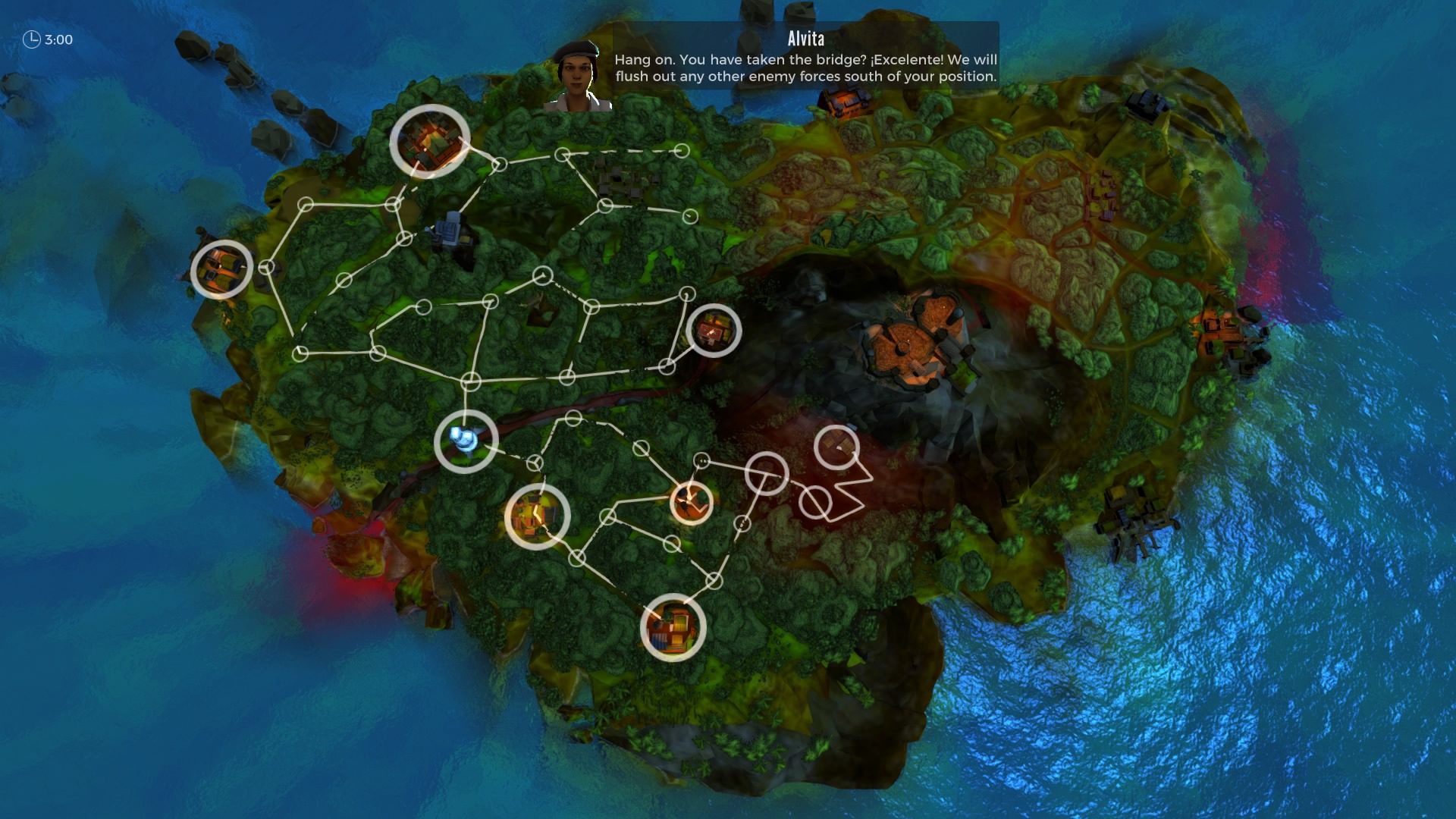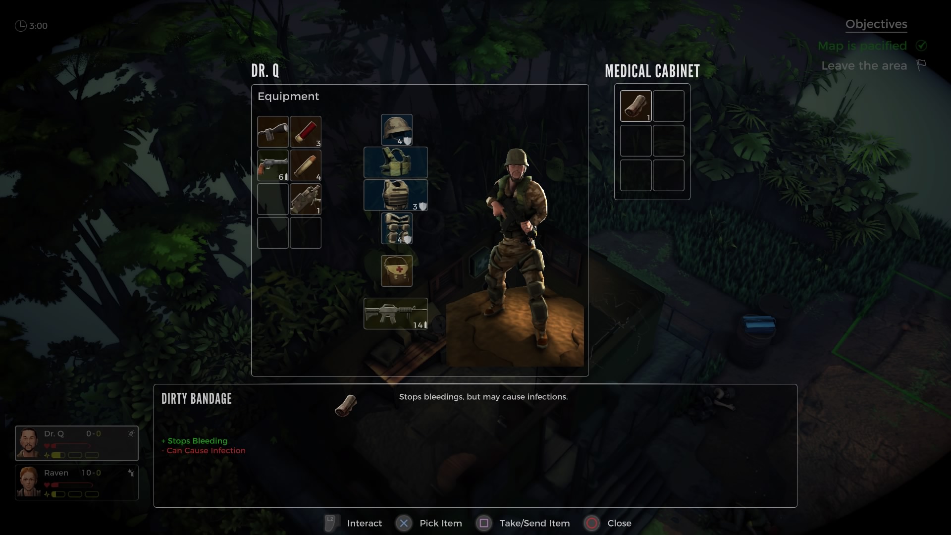 I’m sure much of this comes from budget constraints. The art direction is fine, but the execution is poor. Your mercs sit somewhere between Pixar and 80s cartoons, and much of the jungle is just a muddy mix of greens and browns. The enemy types are limited, as well as the tile-sets for the maps you’ll battle over. These would be easier to look over if the other parts of the experience were more polished.