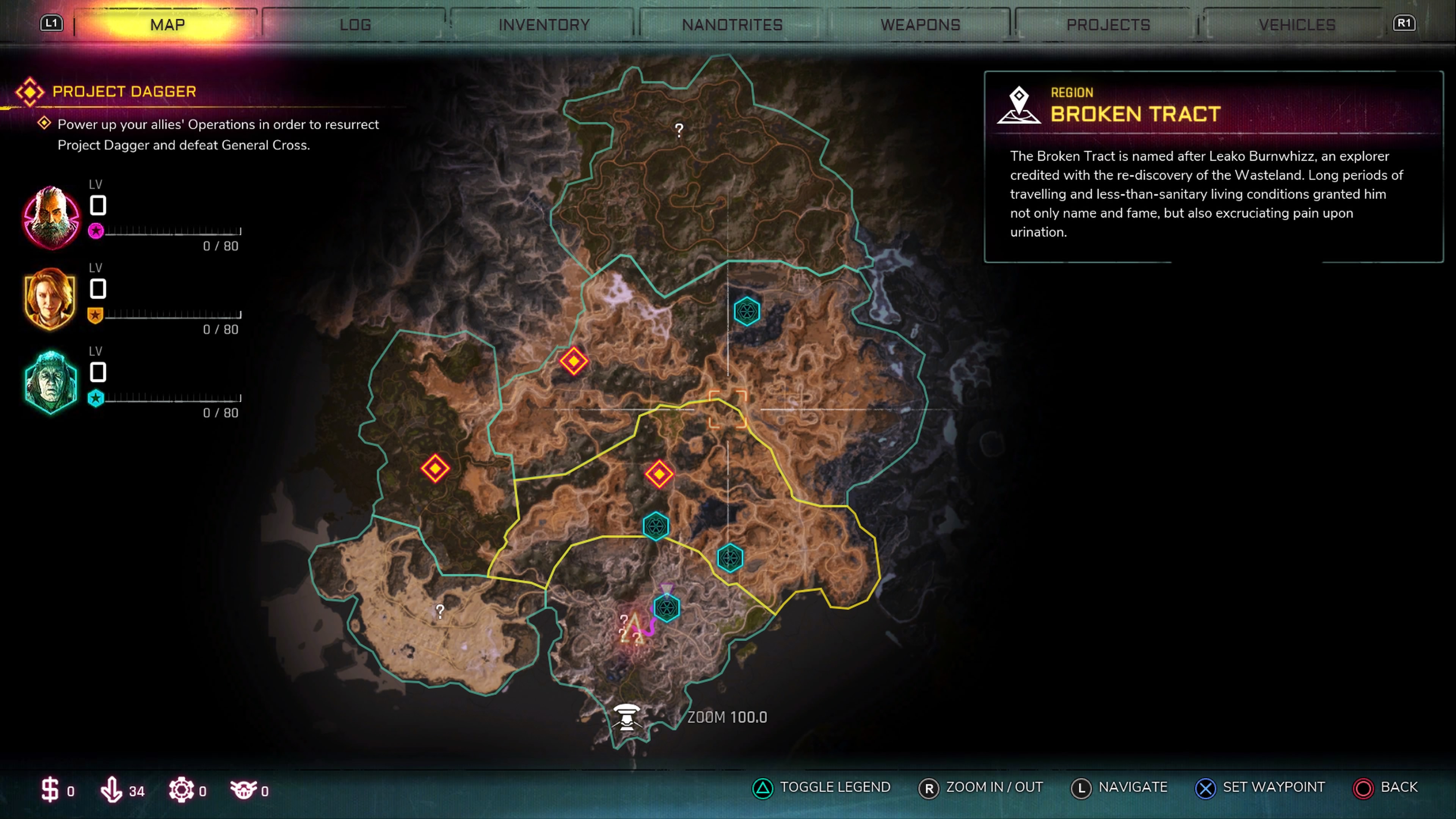 But sadly, there are more issues that you should be aware of: Behind the scenes, you’ll be juggling lots of upgrades and resource materials to craft items. These are mechanics you might be used to, but they’re set up in such a way that comes across as cluttered and disorganized. Firstly, there are various materials you have to use in order to upgrade weapons, vehicles, Nanotrites, gadgets, and augmentations, all of which are buried behind clunky menus. There’s also some serious slowdown when navigating these menus, which brings the fun to a crawl.