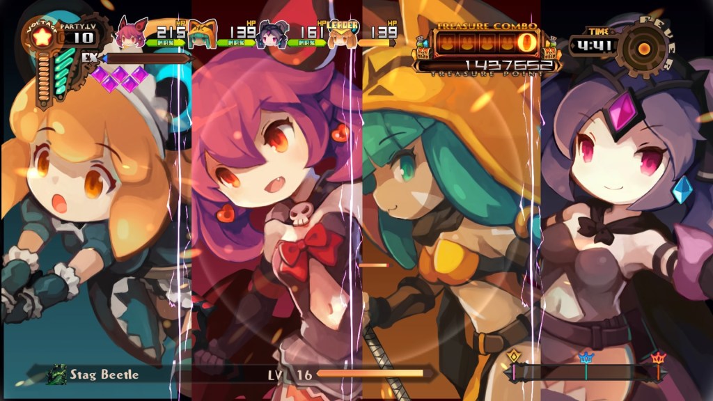 Lapis x Labyrinth occasionally turns into “fever mode,” which resembles a slot machine, for lack of a better analogy. The background is full of flashing lights, and rainbow gems will fly from every enemy you damage. I was never quite sure what triggered this change, but I’m assuming it’s related to the amount of damage you give. I was full of joy every time I entered fever mode; with the flashy background and rainbow gems everywhere, I truly felt invincible.