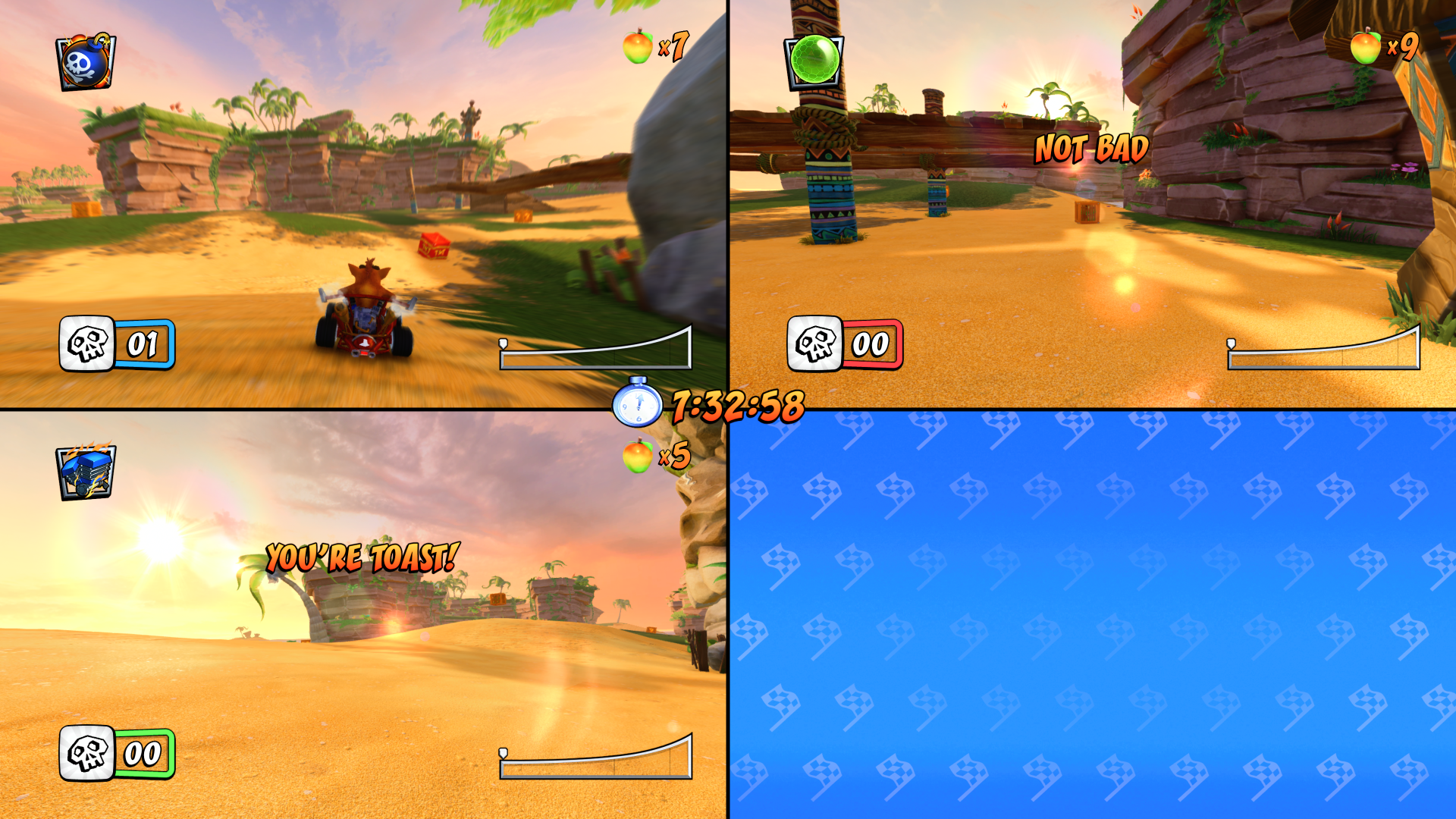 Crash and team look as good as they ever have, just as was the case with the Crash Bandicoot N. Sane Trilogy. Crash Team Racing Nitro-Fueled scales well up to 4K, and runs at a locked 30 frames per second, which is just fine when you consider the original release ran at that rate, and probably much slower in times of high on-screen visual effects or in split screen.
