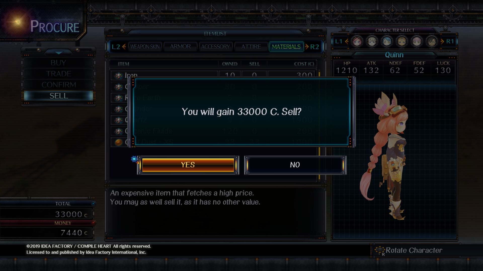 Money is ridiculously easy to come by in Arc of Alchemist, as there are just random chunks of gold dust and other valuable resources littered throughout each area. It’s easy to go out hunting for gold dust for a few minutes, and come back with hundreds of thousands of credits. The base buildings can gain extra buffs depending on what they are placed next to, though the game takes an approach of telling players to experiment to find the best results, rather than actually explain the rules that govern these boosts.