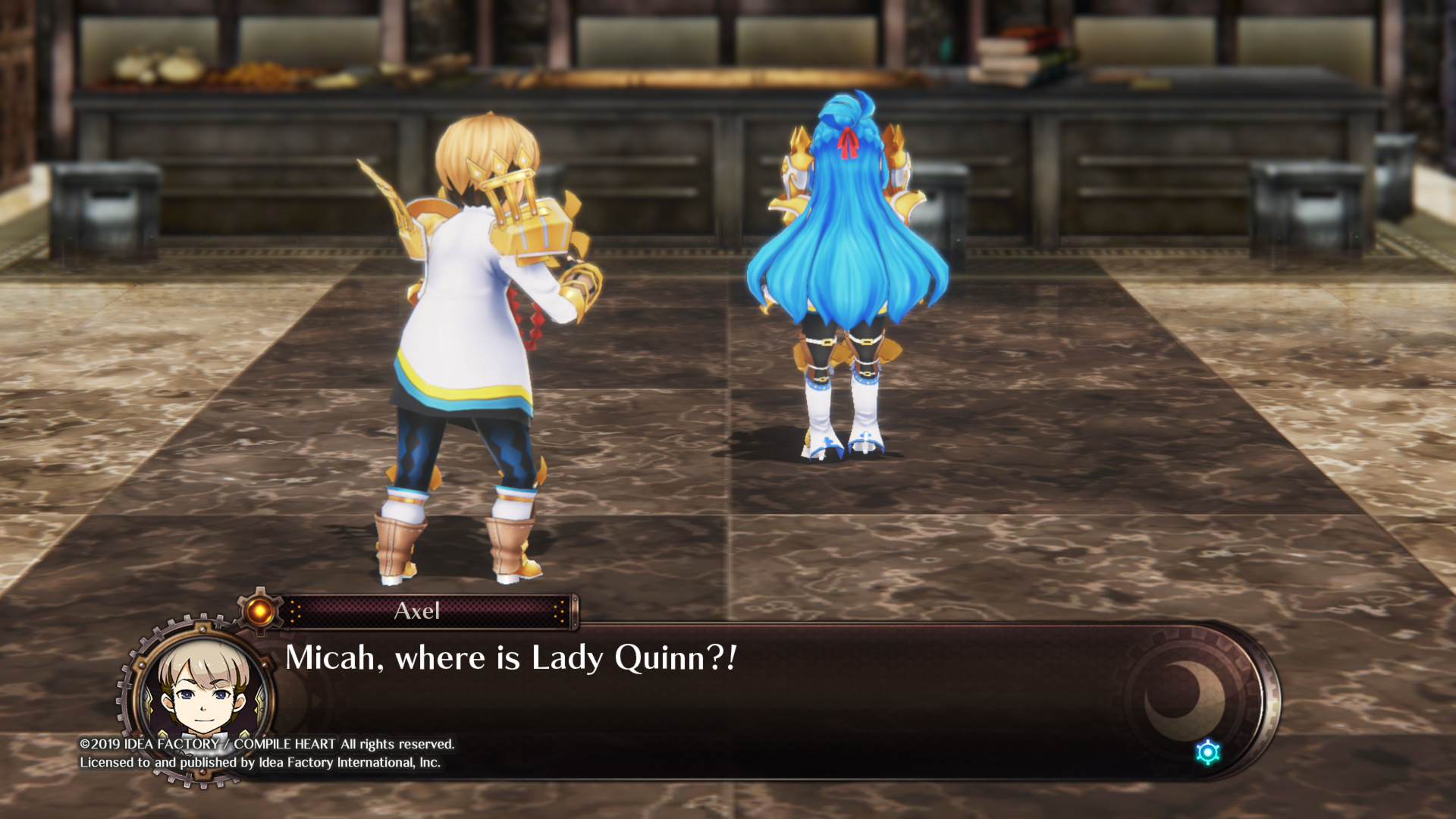 Combat in Arc of Alchemist is simple. Fighting takes place in realtime, and there are no battlefields that load into place ala Final Fantasy. Mashing circle performs combos with a character’s main weapon while mashing square performs combos with a secondary weapon. L2 and R2 activate special orbs called Lunagear, which are usually aligned with some sort of element. The Earth Lungear, for instance, can generate boxes which Quinn and crew can jump on top of. These can be stacked and used to create impromptu staircases to reach higher spots where treasure chests are located. Only two Lunagear can be equipped at one time, though they can be combined to create special effects, such as summoning stationary drones that fire at enemies. It’s the one unique aspect of Arc of Alchemist that changes things up.