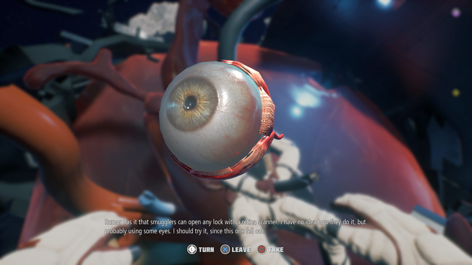 There are people who were squished by equipment, with their entrails frozen and floating in place just in front of them, others who were somehow reduced to a skeleton in space (where no desiccation could actually occur), and even one guy who was going to die anyway as his wife had wrapped a condom around his face when she found out he was cheating on her. That last one is definitely a reminder that despite appearances, Breathedge is not really a game for younger children. Each death is setup like a diorama, where the player can float around the scene and find useful objects that you might see in such a location. Sure, this completely ignores the effects of gravity in that the diorama-like scenes are stationary, but they are fun to look at and loot.