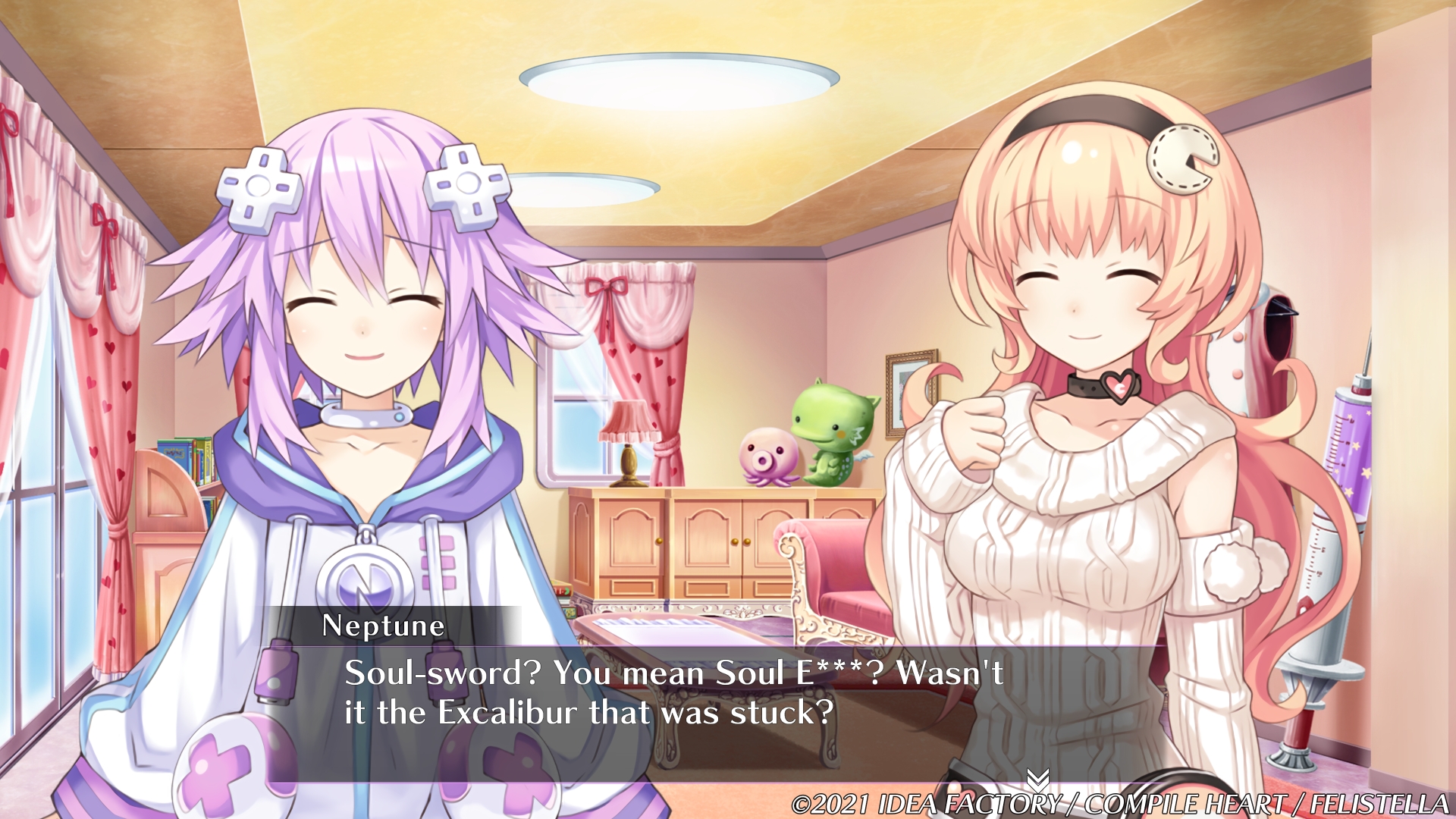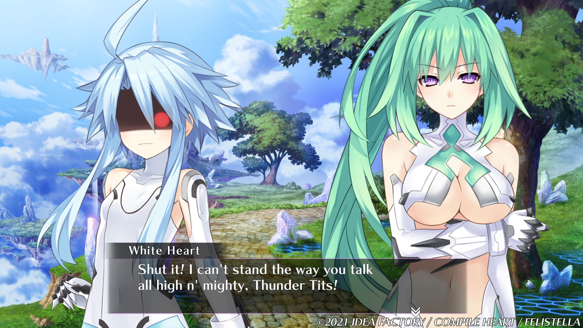 Indeed, if you have played the Vita remake, then you’ll know what to expect here. Neptune is the goddess of the nation Planeptune, the personification of the CPU of a Sega console. Other goddesses also represent consoles, such as Vert who defends the nation of Leanbox (Xbox), Noire who protects Lastation (take a wild guess), and Blanc who defends Lowee (Wii). It’s all very tongue-in-cheek and self-aware, as the franchise constantly pokes fun of gamer and otaku culture at large. At this point, though, the original’s 2010 release is certainly showing its age with some of its dated references. Blanc’s color scheme of the Wii-like console is the most glaring, because at this point, she should be red-tinted to evoke the Switch. But then, it wouldn’t feel the same!