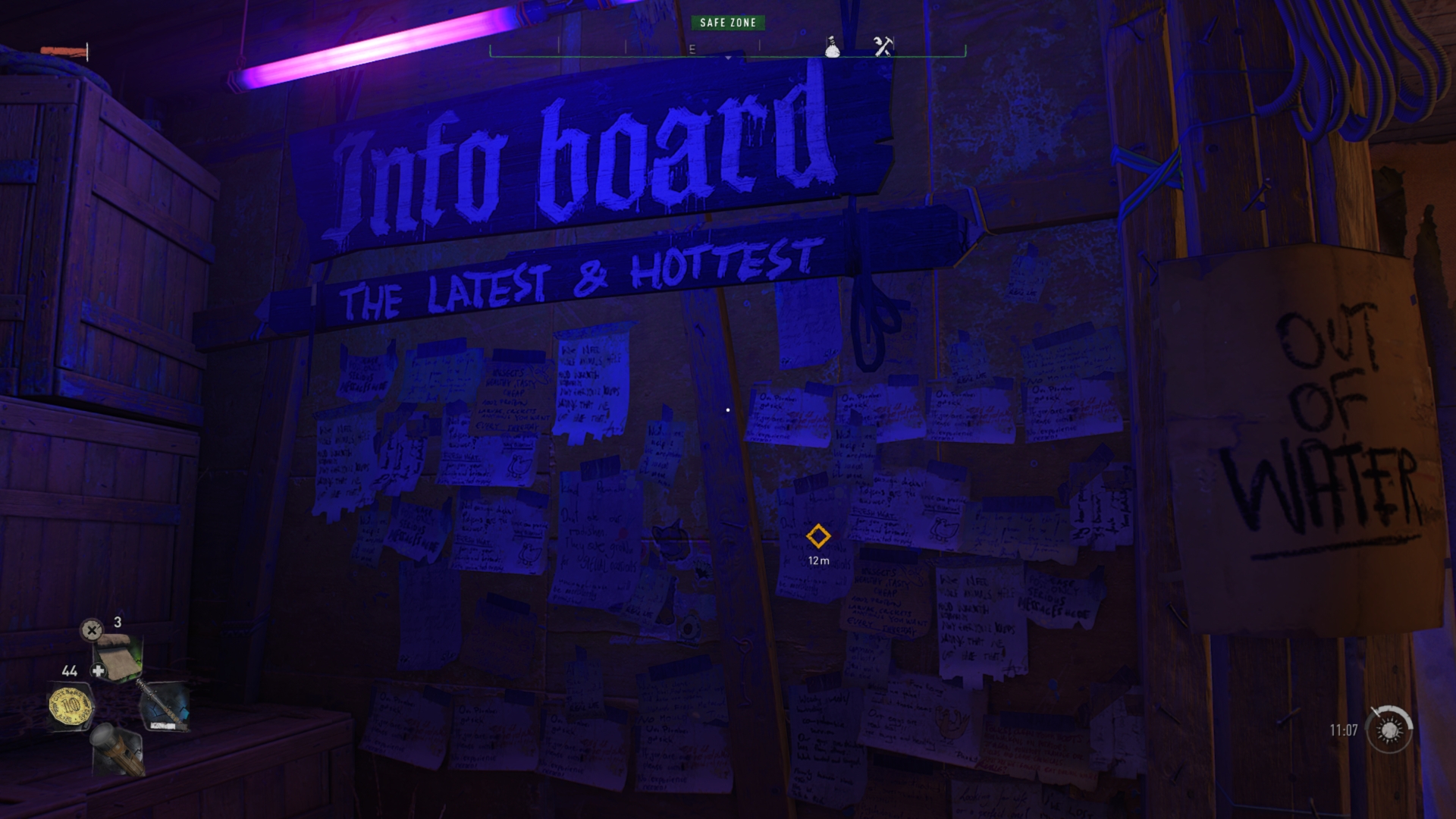 At the start of each morning, extra XP is earned based on the player’s performance during the night. This XP earns skill points to unlock Aiden’s latent combat and parkour skills, while finding and collecting inhibitors increase his health or stamina while also allowing for extra time that can be spent outside of the protection of UV light.