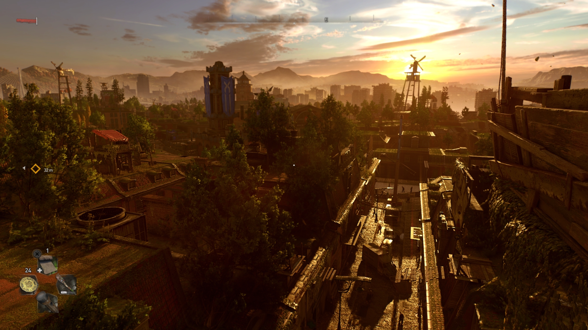 The world of Dying Light 2 was designed with verticality in mind, owing to the series’ focus on parkour. Conveniently colored ledges highlight potential running lines, Mirror’s Edge style. Movement can be so smooth once you get the hang of the traversal options, that it kind of feels like a first-person version of Assassin’s Creed, but with zombies.