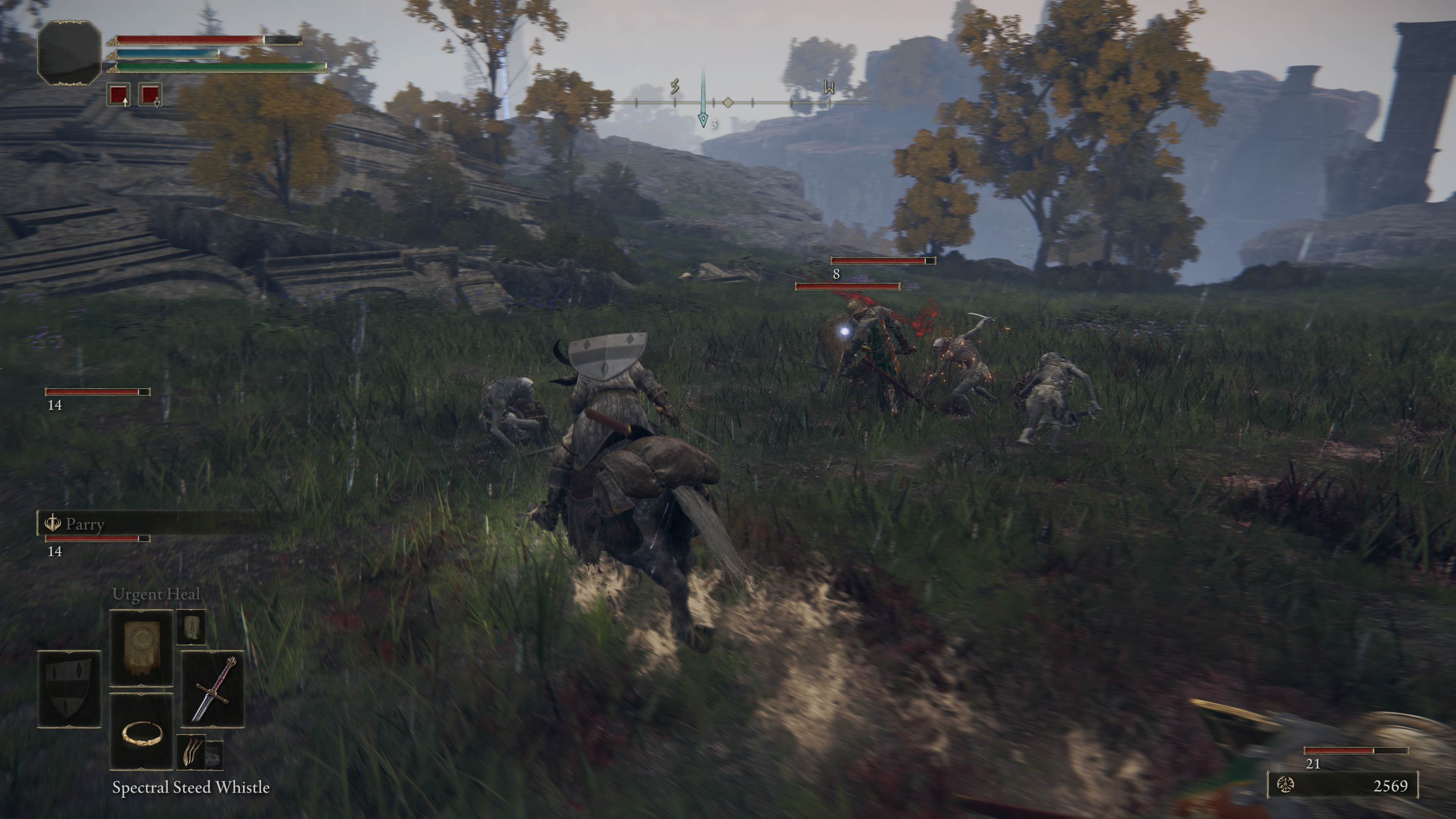 Much like any Dark Souls, Bloodborne, or Sekiro game before it, Elden Ring features no difficulty levels, but rather different areas contain within them enemies of varying strength. The starting area known as Limgrave has relatively tame enemies, though of course, this is all relative. Even a basic undead chimp enemy can kill you in just a few hits. Most areas also have at least one named enemy. These may not be considered bosses, but they’ll kick your ass all the same, especially the first time you encounter them. However, since Elden Ring takes place in an open world, running away is actually a valid option, if you’ll allow the hit to your pride. Naturally, though, you may end up running into some other hideous and perhaps even tougher enemy, wherever you run to.