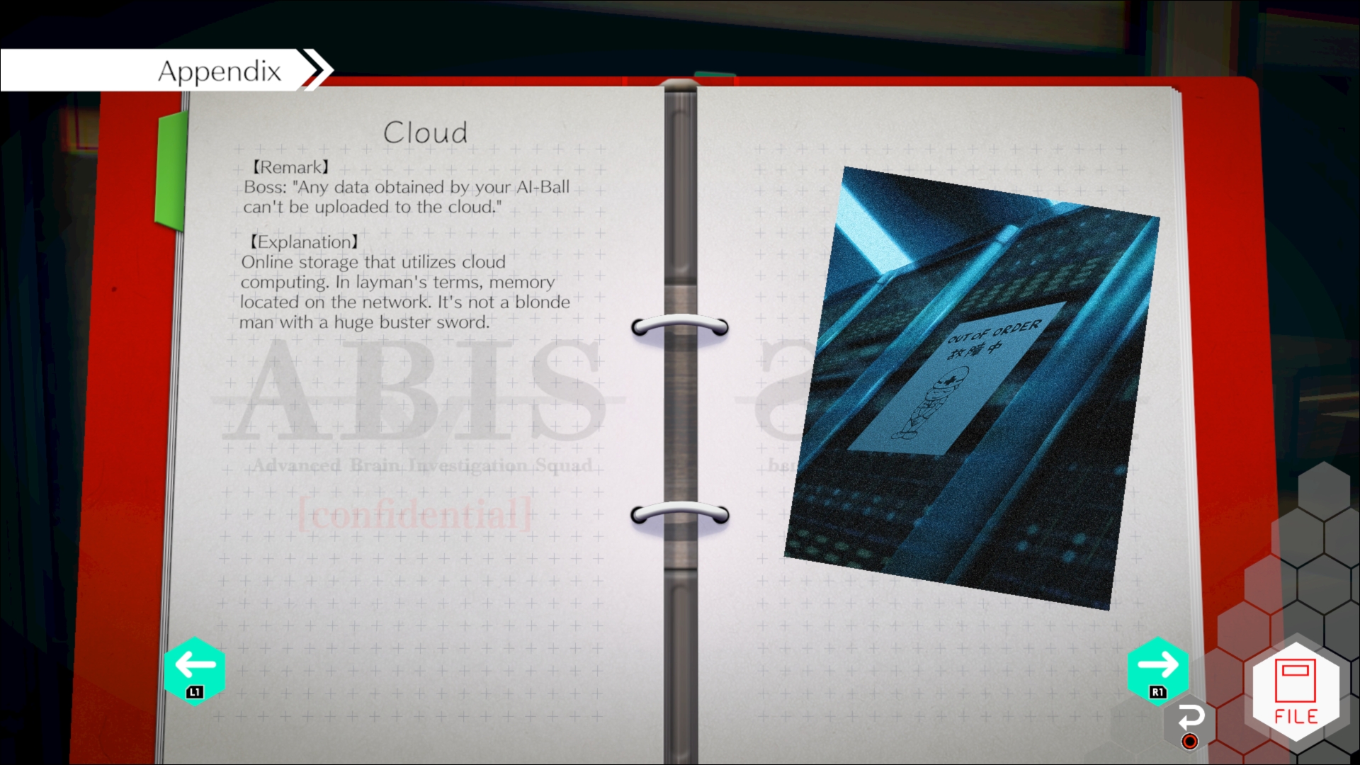 This time around, players control newbie Ryuki and his AI Tama alongside Mizuki Date, the prodigy taken under the wing of the previous game’s Kaname Date, though her AI is still Aiba, who left the eye socket of Kaname in the time between the first game and nirvanA Initiative. You see, the Advanced Brain Investigation Squad (ABIS) uses ocular implants that feature advanced optical systems alongside seemingly fully sentient AI programs. Conveniently, those who use them usually had some sort of injury to their eye anyway. It has been six years since the events of the first game, though players will follow the story back and forth in time and are tasked with keeping track of information on events and suspects in each timeline.