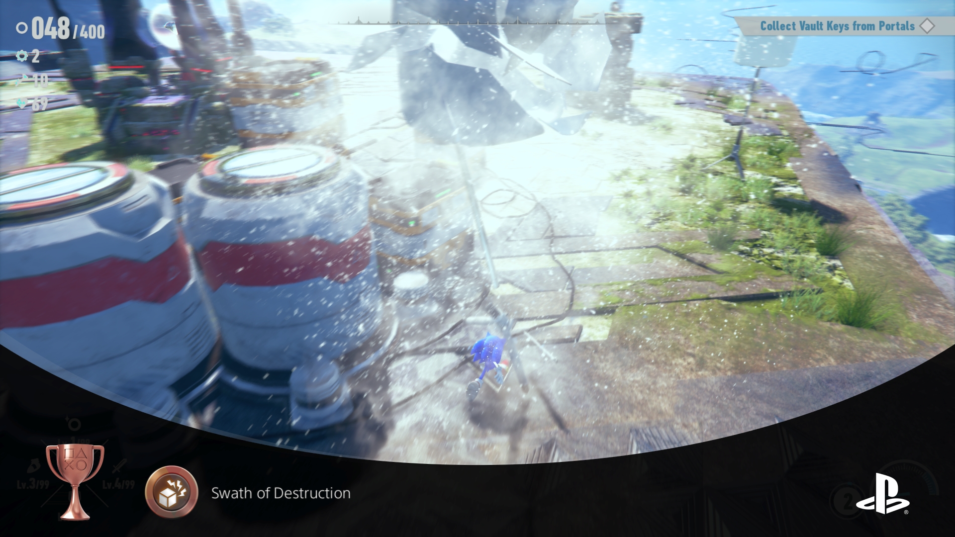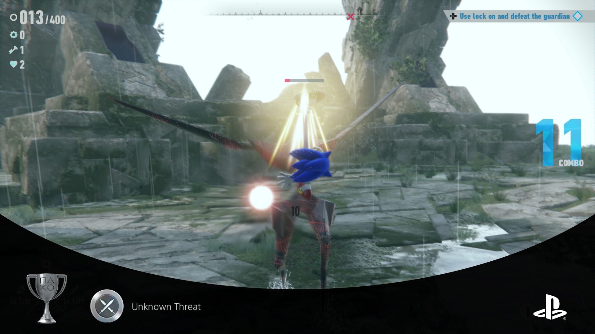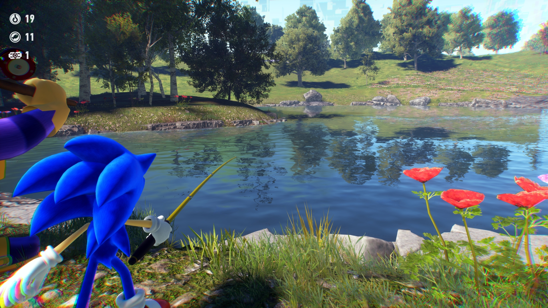 Furthering the RPG elements is an unlockable skill tree that grants Sonic additional abilities. Beyond the tutorial, players can spend as much or as little of their levels on these skills. This includes such abilities as Cyloop, where the player holds Triangle to run around and leave a trail of energy behind them. If they complete a circle with this trail and release the button, various effects can happen depending upon the context – shielded enemies will lose their protection, others will become stunned. It can also be used on the environment at certain obvious spots to unearth hidden memory tokens, seeds, or just a collection of rings.