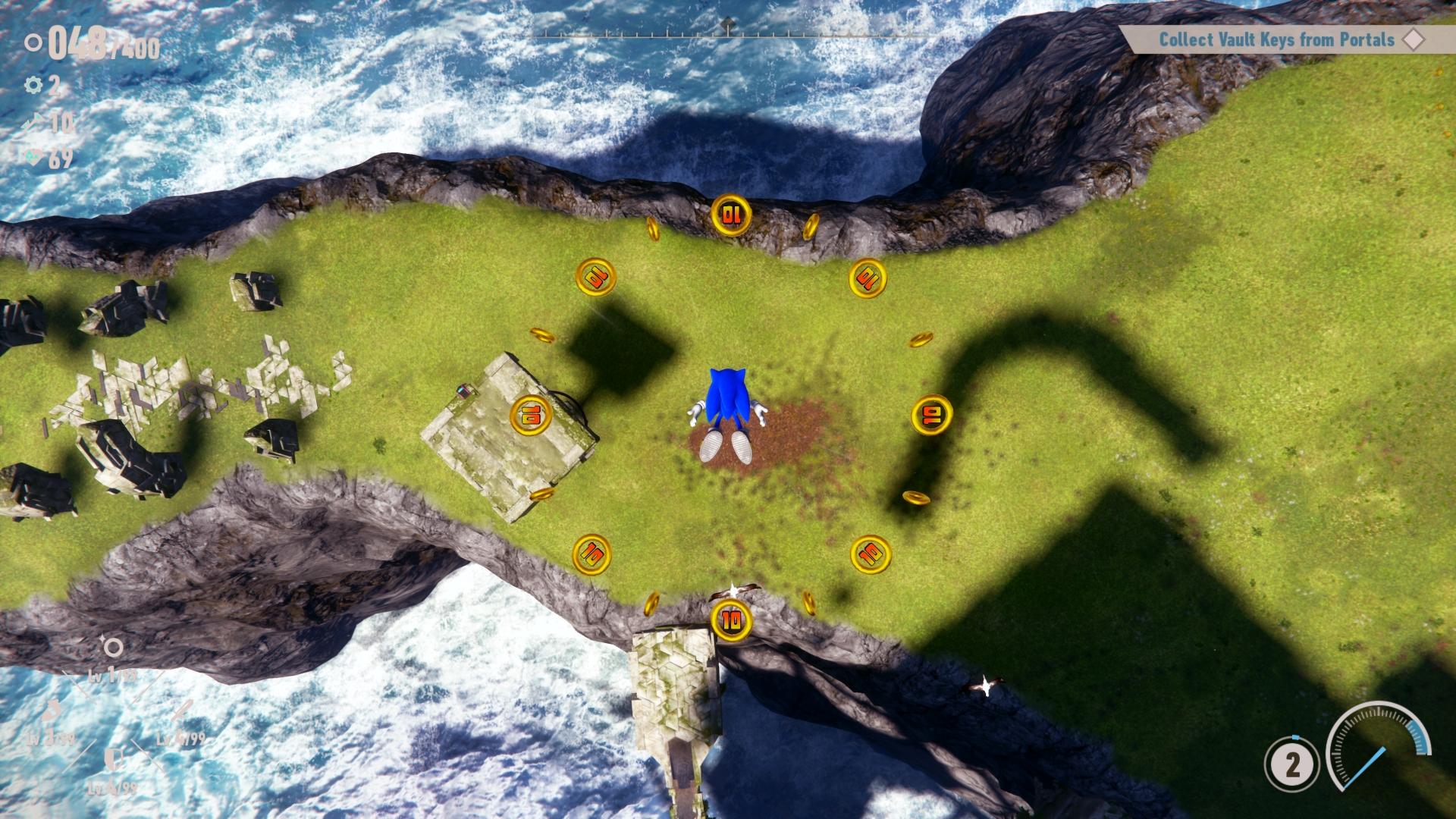 Depending upon how many of each level’s goals you meet or exceed, you’ll receive a number of portal keys upon returning to the overworld. Acquiring enough of these keys can unlock a nearby Chaos Emerald. Generally, you don’t have to clear too many objectives to earn enough keys to progress the story. However, at certain points, the game requires you to collect enough memory tokens to speak to another character.