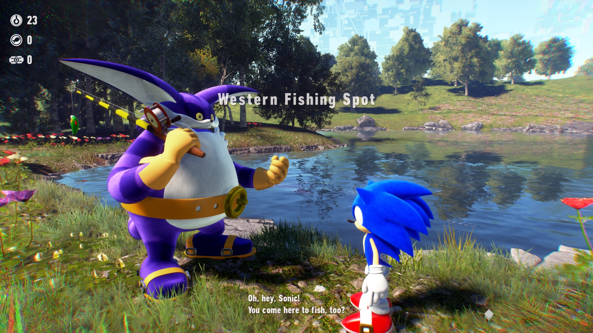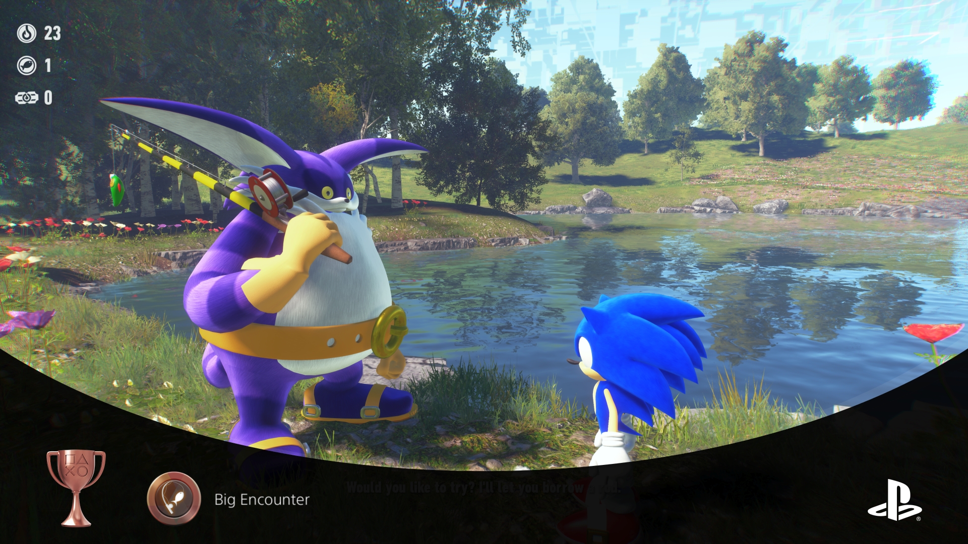The gang’s all here in Sonic Frontiers, as Sonic, Tails, Knuckles, Amy, and others take on Dr. Robotnik in his latest scheme involving the “ancients” and some sort of Cyber Space area controlled by a character he created. Hell, even Big makes an appearance. Everyone is voiced, and although Sonic sounds almost too mature for his character, you do eventually get used to it.