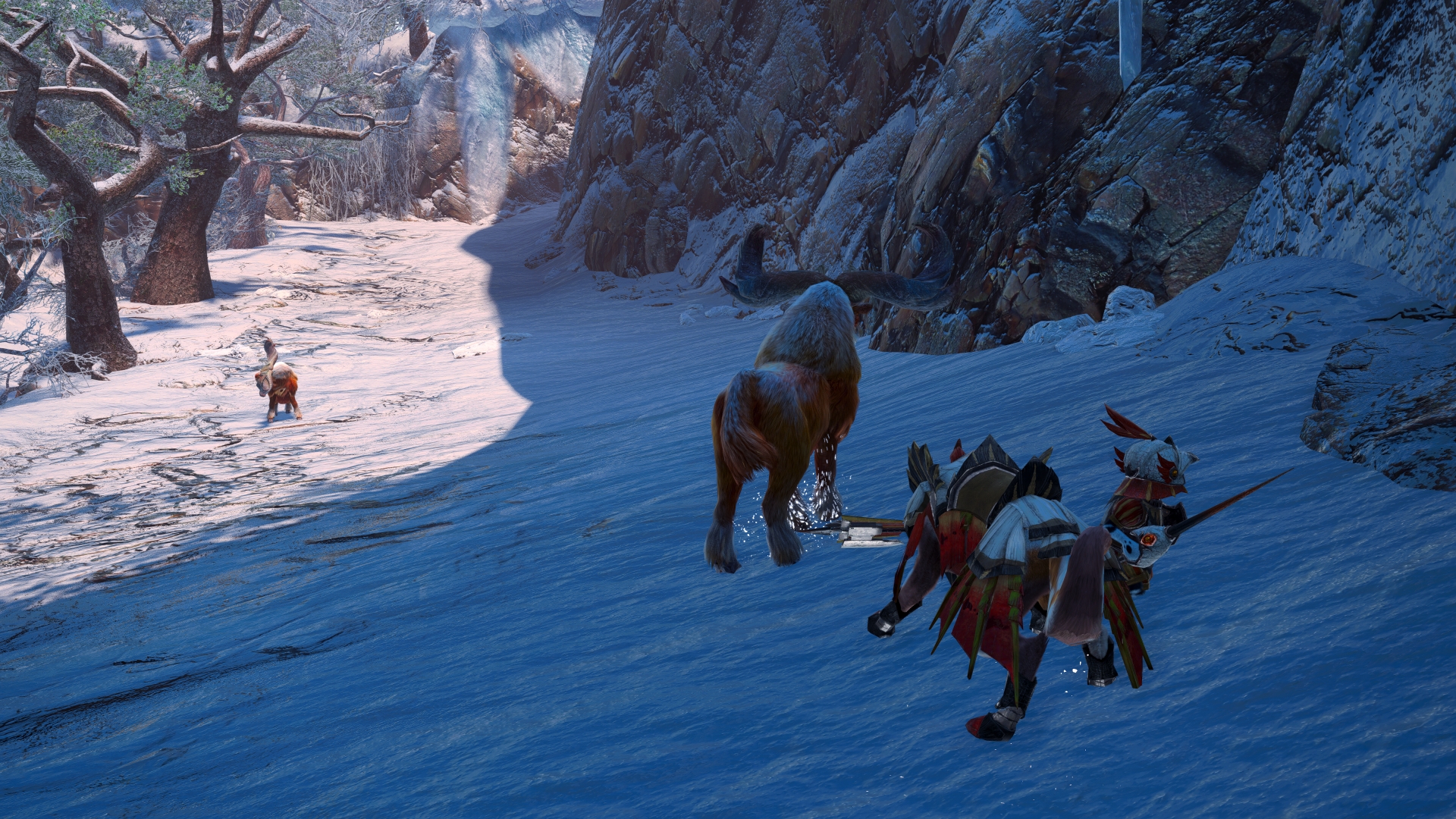 Palamutes, meanwhile, are a canine-like species of companion animals that will fight alongside you much like the cat-like Palico species. Unlike those felines, though, Palamutes can be mounted and ridden like a small horse. This allows for quickly moving about the area while using none of the player’s stamina. Considering the larger size of most of Rise’s maps, this feature is appreciated. You can also attack while on this animal, though the attacks are limited in order to encourage more traditional combat.