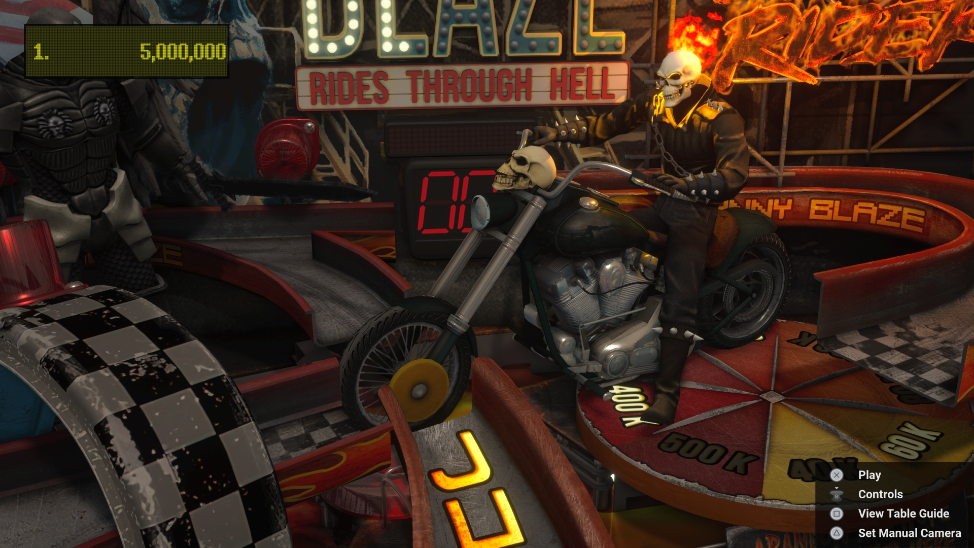 Controls for Pinball FX are dead simple. The right stick controls the table’s plunger, and you can vary how hard the ball is launched by tiling the stick back slightly as opposed to completely downwards. The cross button can also be used on tables that have a single launch speed, or to make choices when on an in-game mission as most tables include. Any shoulder button or trigger can be used to use the flippers, with no use of the adaptive triggers (it really wouldn’t make sense here as you need the flipper to react as soon as you press it). The left analog stick can be used to nudge the table, though of course doing this too frequently will cause most tables to lock up. Triangle toggles between eight built-in views, plus a special manual camera option which allows the player to set the camera’s height to whatever level they deem is most useful.
